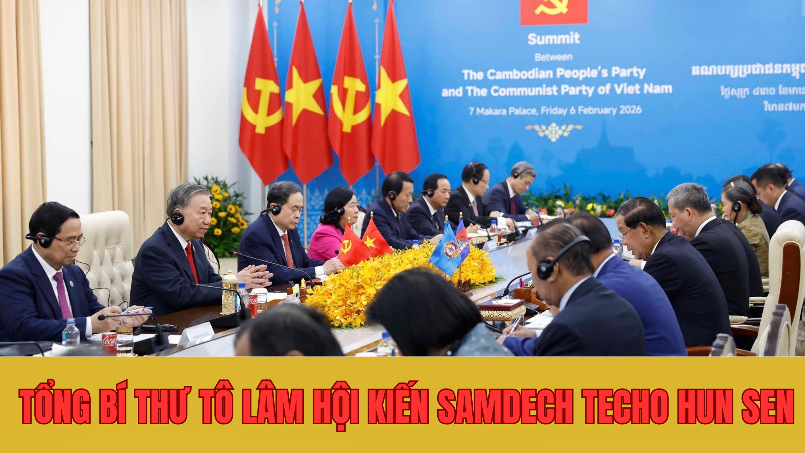 Nhận lời mời của Quốc vương Campuchia Norodom Sihamoni, sáng 6/2, Tổng Bí thư Tô Lâm và Đoàn đại biểu cấp cao Đảng, Nhà nước Việt Nam đã đến Thủ đô Phnom Penh, bắt đầu chuyến thăm cấp Nhà nước tới Vương quốc Campuchia. Cùng đi với Tổng Bí thư trong chuyến thăm có Thủ tướng Chính phủ Phạm Minh Chính, Chủ tịch Quốc hội Trần Thanh Mẫn.