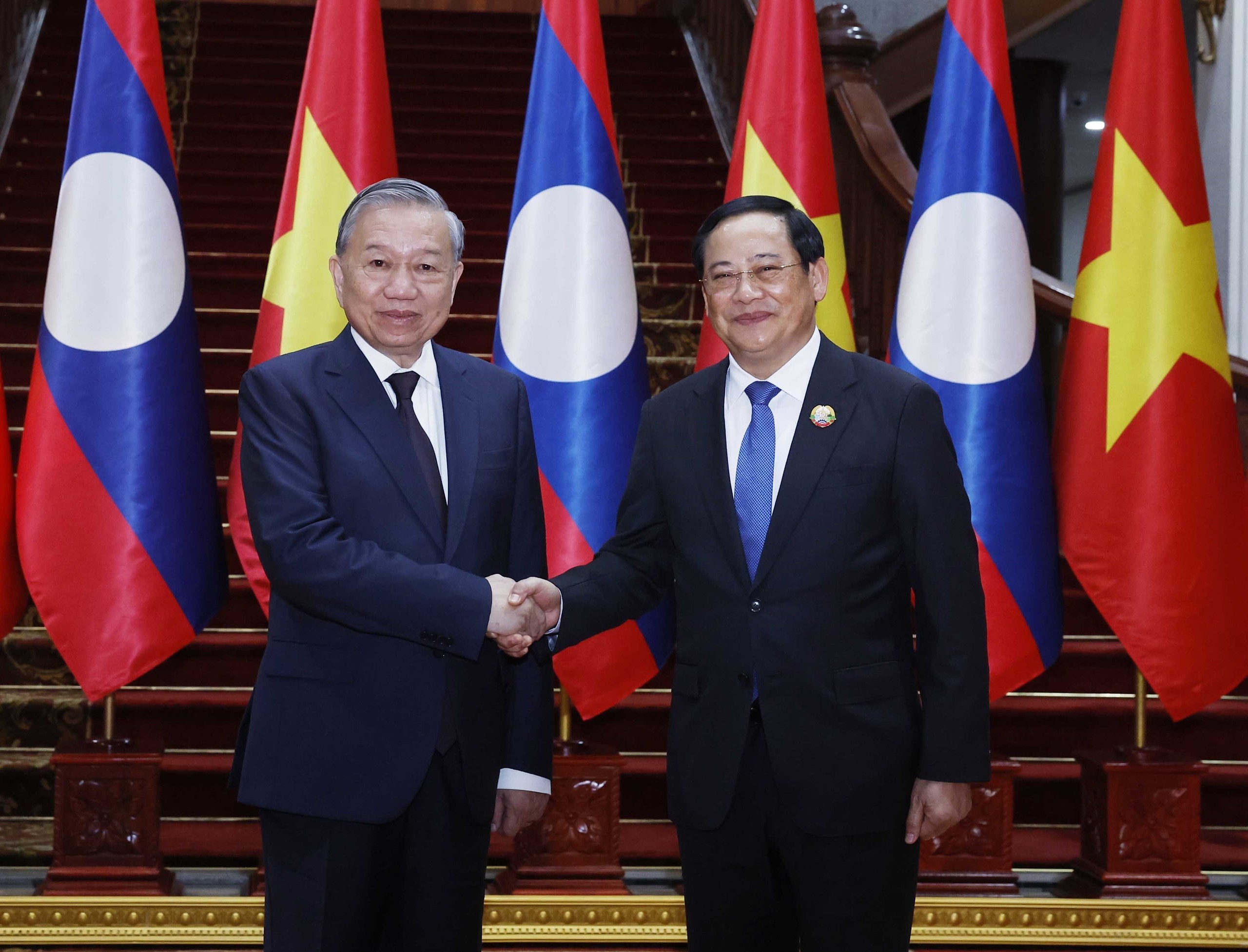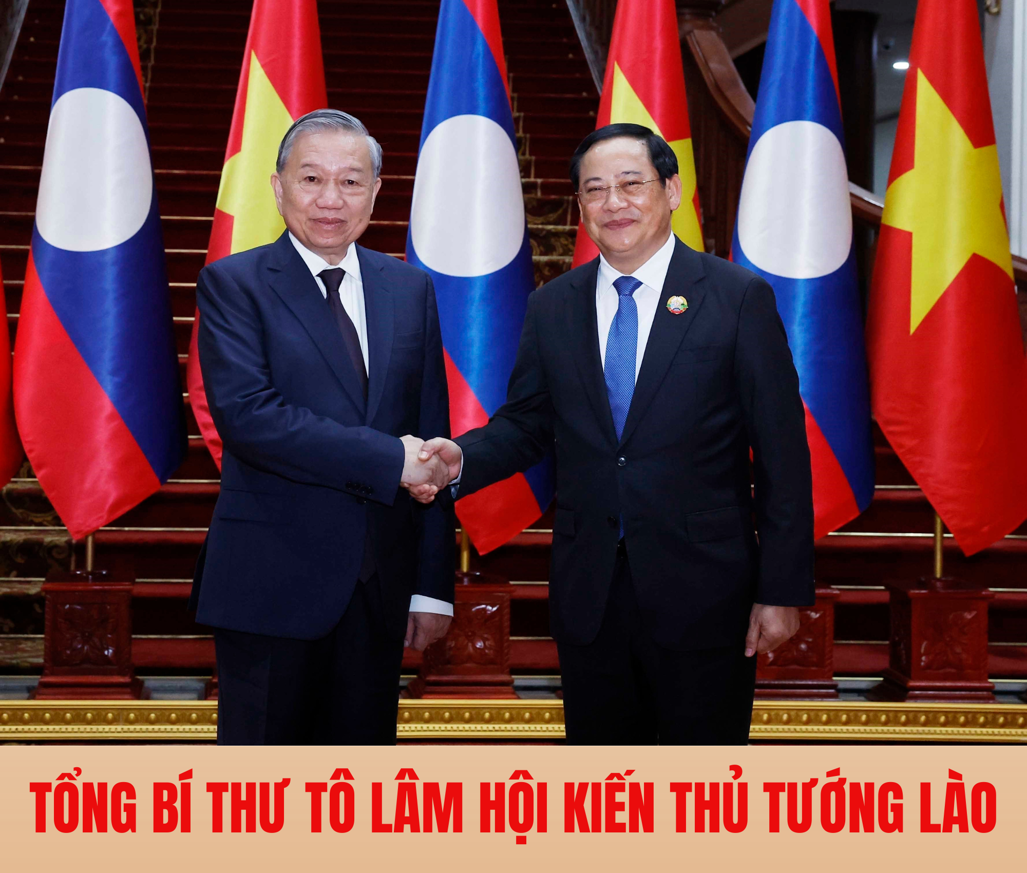 Chiều 1/12/2025, tại thủ đô Vientiane, Tổng Bí thư Tô Lâm hội kiến Thủ tướng Lào Sonexay Siphandone.