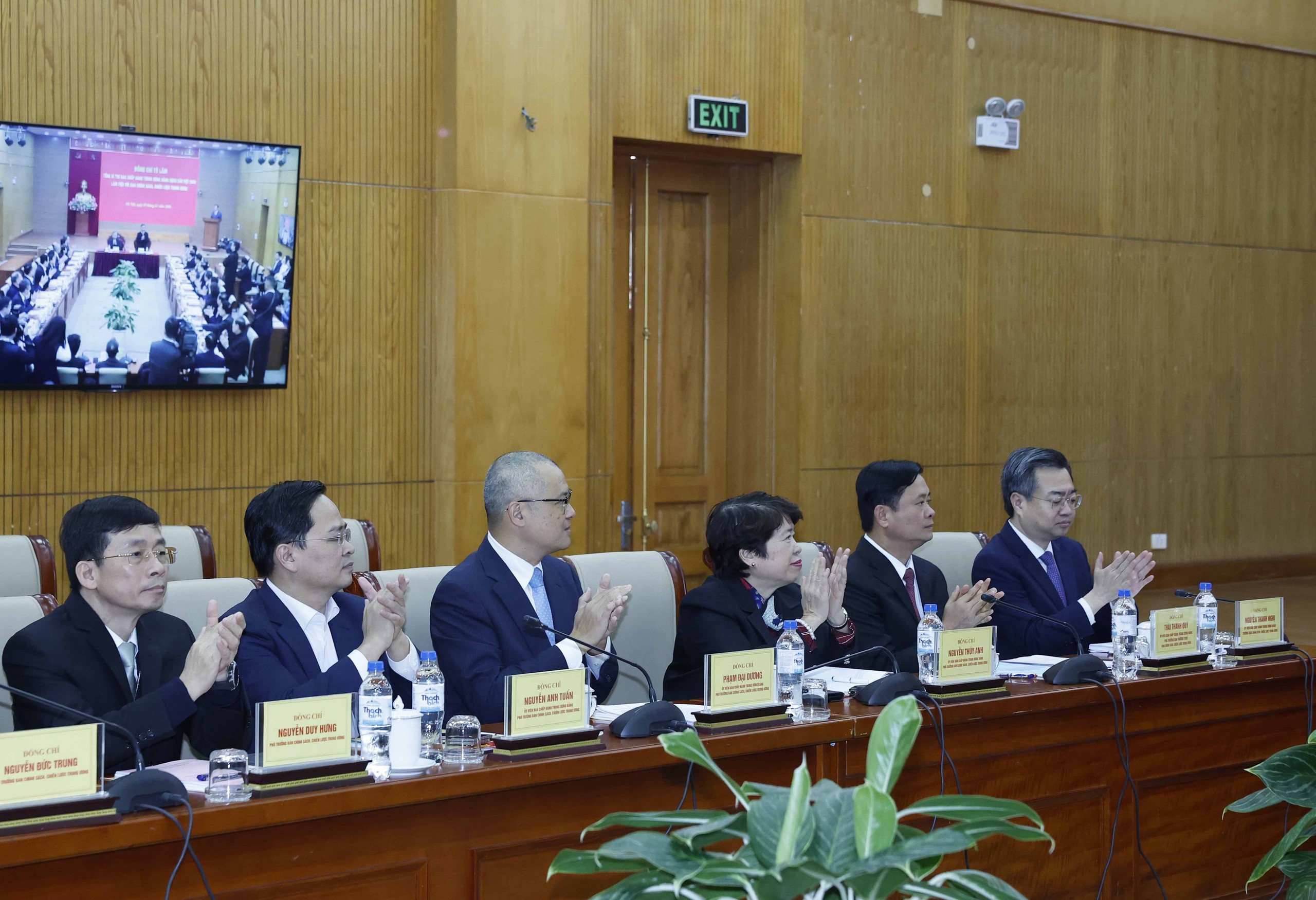 Tham dự buổi làm việc có các đồng chí Ủy viên Bộ Chính trị: Trần Cẩm Tú, Thường trực Ban Bí thư; Phan Đình Trạc, Bí thư Trung ương Đảng, Trưởng ban Nội chính Trung ương; Nguyễn Xuân Thắng, Giám đốc Học viện Chính trị quốc gia Hồ Chí Minh, Chủ tịch Hội đồng Lý luận Trung ương; các đồng chí Bí thư Trung ương Đảng, Ủy viên Trung ương Đảng, lãnh đạo Chính phủ, Quốc hội, lãnh đạo các ban, bộ, ngành cơ quan Trung ương.