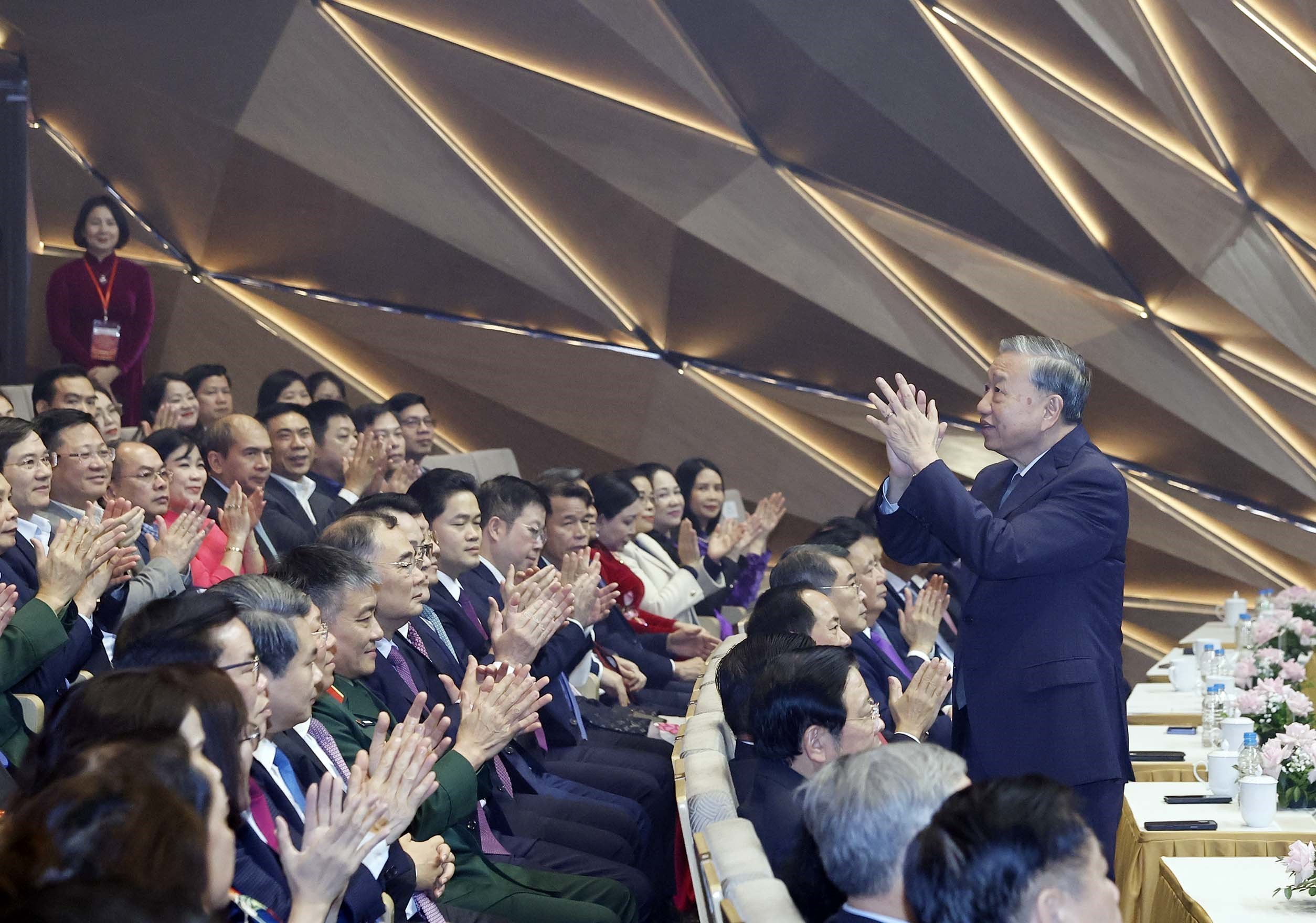 Tổng Bí thư Tô Lâm và các đại biểu dự Chương trình "Hồ Chí Minh - Hành trình khát vọng 2025". Ảnh: Thống Nhất – TTXVN