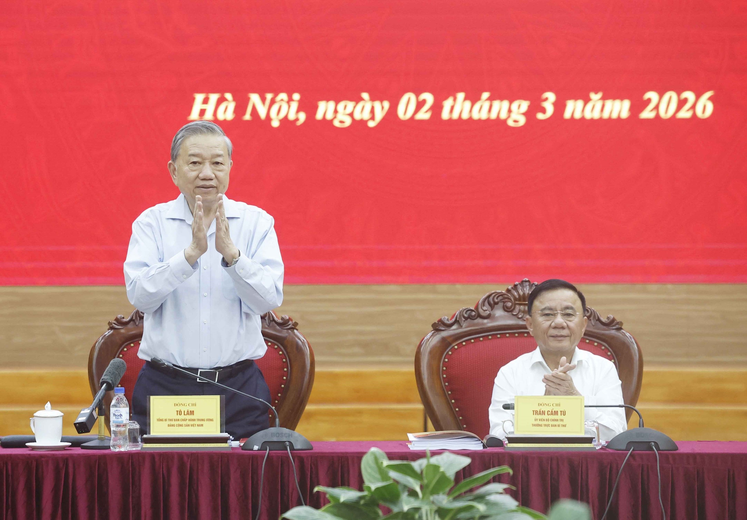 Chiều 2/3/2026, tại Hà Nội, Tổng Bí thư Tô Lâm làm việc với Ban Chính sách, chiến lược Trung ương.