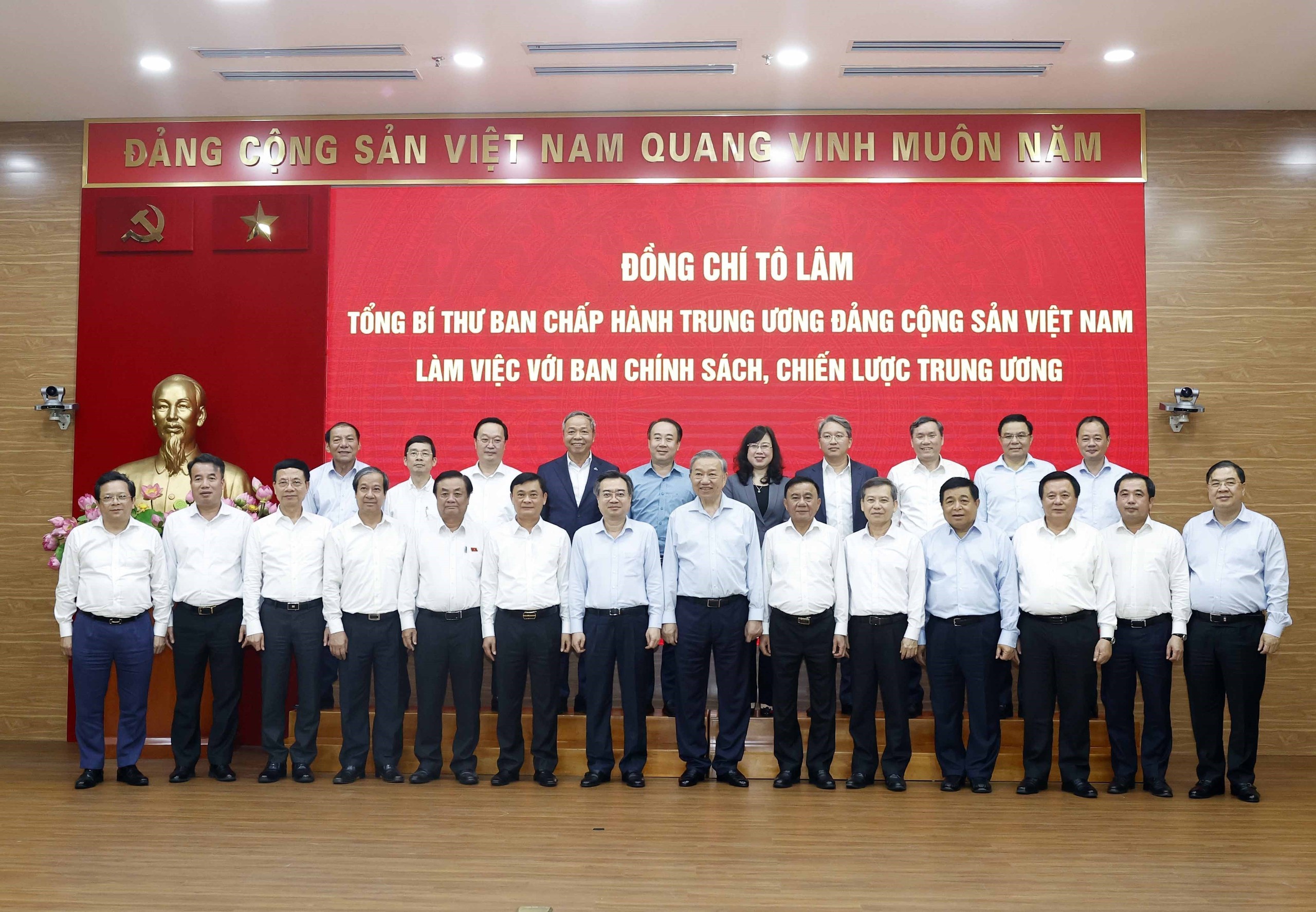Tổng Bí thư Tô Lâm tại cuộc làm việc với Ban Chính sách, chiến luợc Trung ương. Ảnh: Thống Nhất – TTXVN