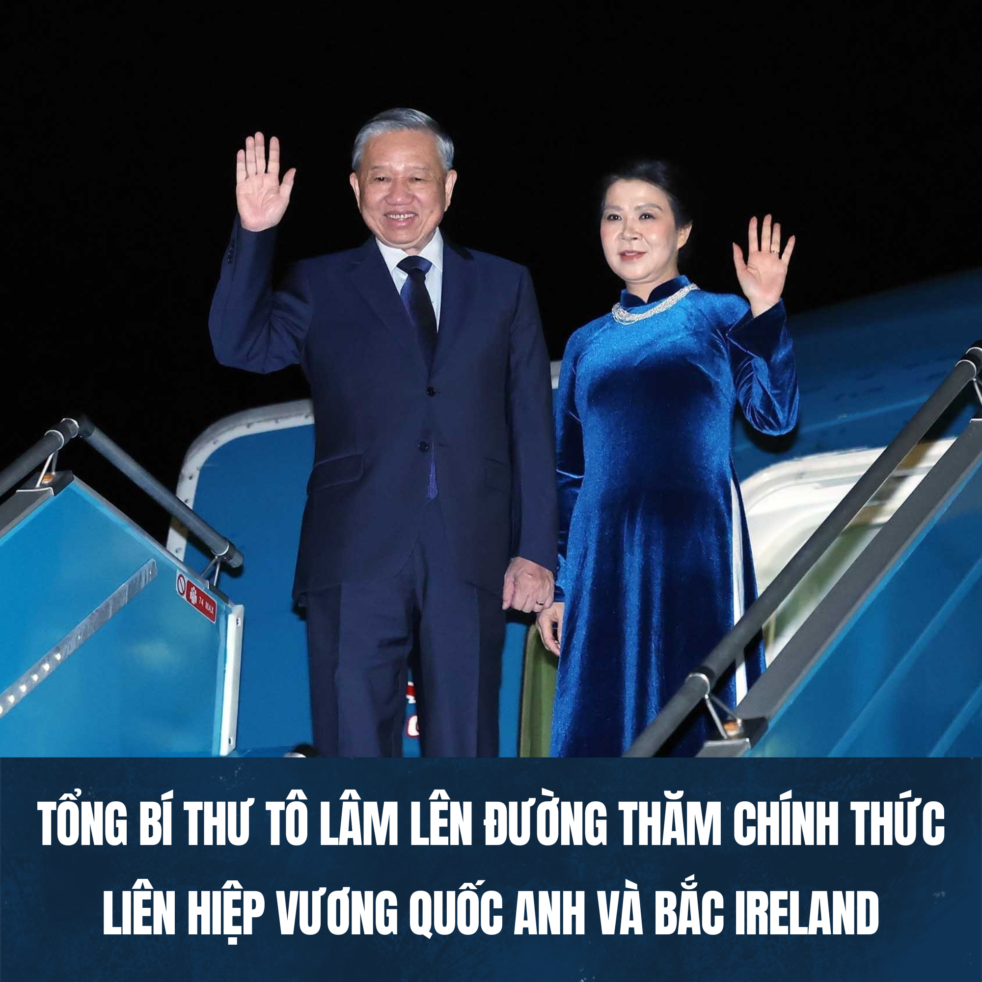 Nhận lời mời của Thủ tướng Liên hiệp Vương quốc Anh và Bắc Ireland Keir Starmer, ngày 28/10/2025, Tổng Bí thư Ban Chấp hành Trung ương Đảng Cộng sản Việt Nam Tô Lâm và Phu nhân Ngô Phương Ly cùng Đoàn đại biểu cấp cao Việt Nam rời Thủ đô Hà Nội lên đường thăm chính thức Liên hiệp Vương quốc Anh và Bắc Ireland từ ngày 28-30/10/2025.