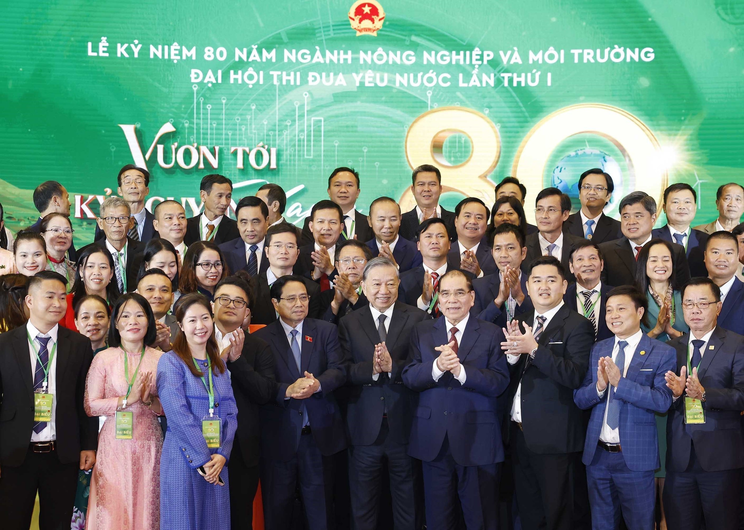 Nhân dịp này, Tổng Bí thư Tô Lâm đã trao Huân chương Lao động hạng Nhất cho Bộ Nông nghiệp và Môi trường có thành tích xuất sắc trong tăng trưởng GDP ngành Nông nghiệp và Môi trường, đóng góp lớn cho sự phát triển kinh tế - xã hội của đất nước, góp phần vào sự nghiệp xây dựng chủ nghĩa xã hội bảo vệ Tổ quốc.