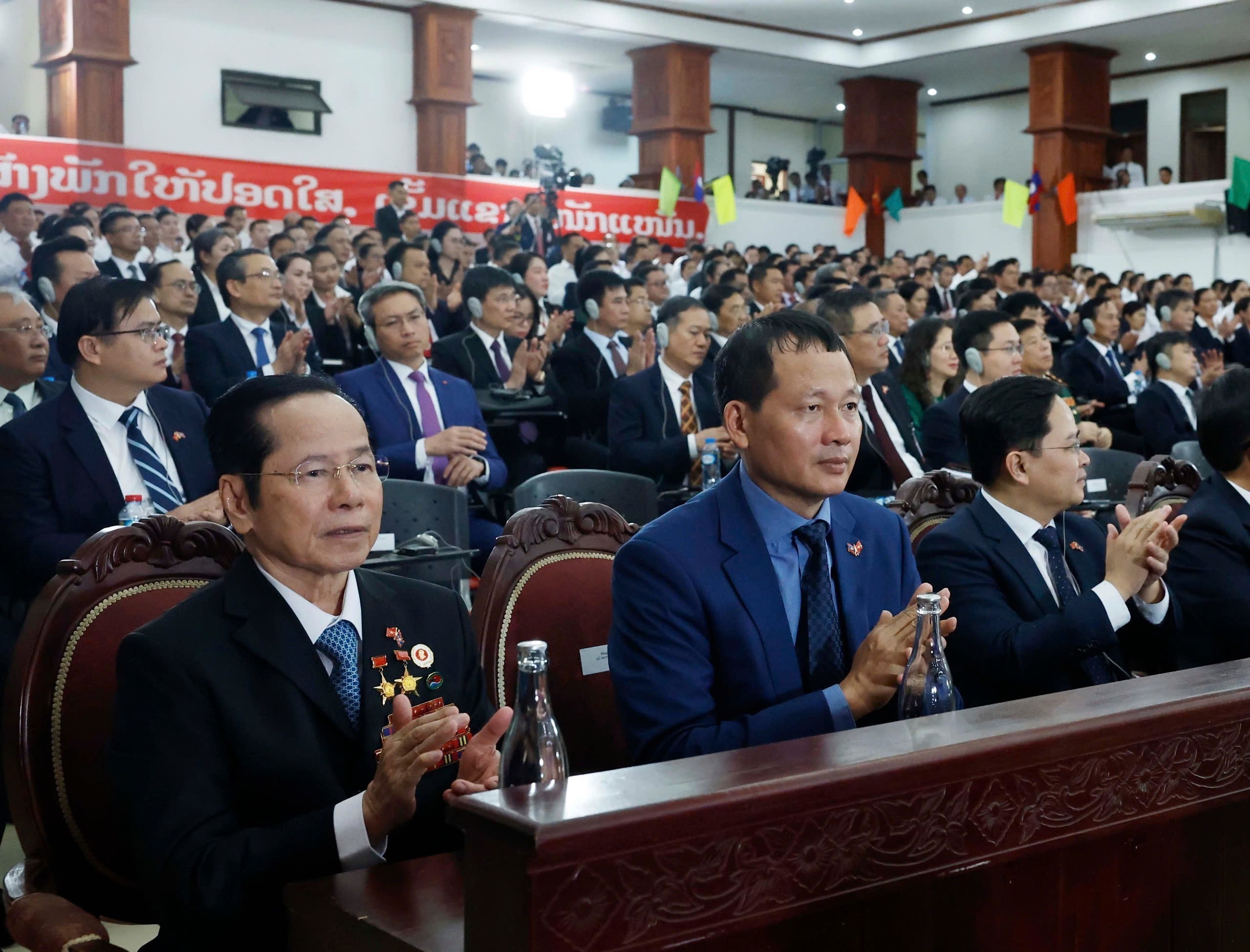 Các đại biểu Lào tham dự cuộc phát biểu chính sách của Tổng Bí thư Tô Lâm tại Học viện Chính trị và Hành chính Quốc gia Lào. Ảnh: Thống Nhất - TTXVN