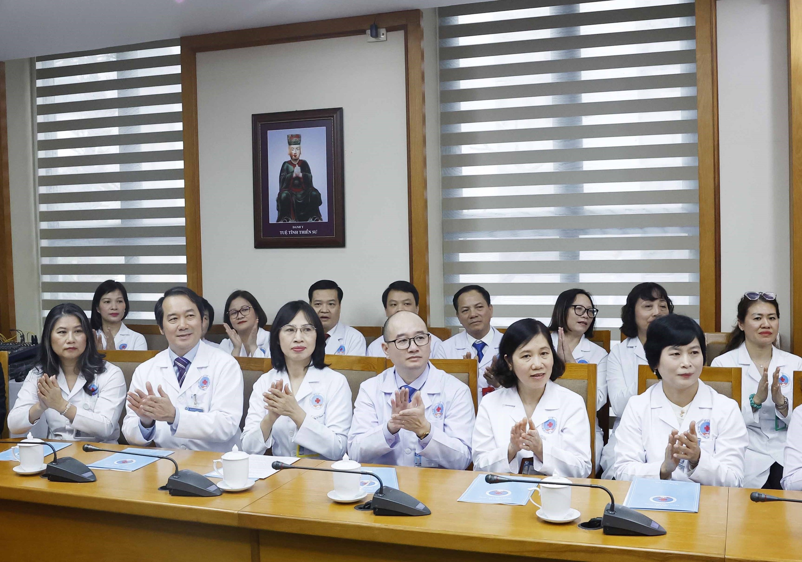 Cán bộ,Bác sỹ, nhân viên y tế Bệnh viện Hữu nghị tham dự. Ảnh: Thống Nhất – TTXVN