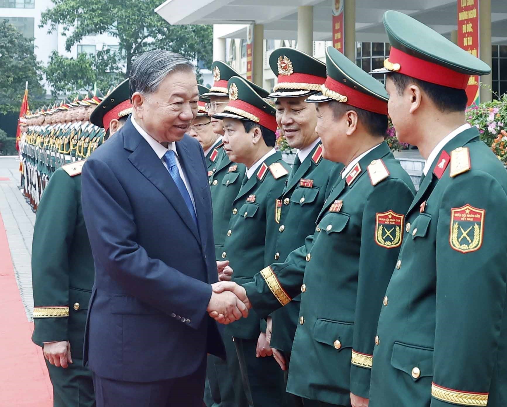 Tổng Bí thư Tô Lâm đến thăm và làm việc với Học viện Kỹ thuật quân sự. Ảnh: Thống Nhất – TTXVN