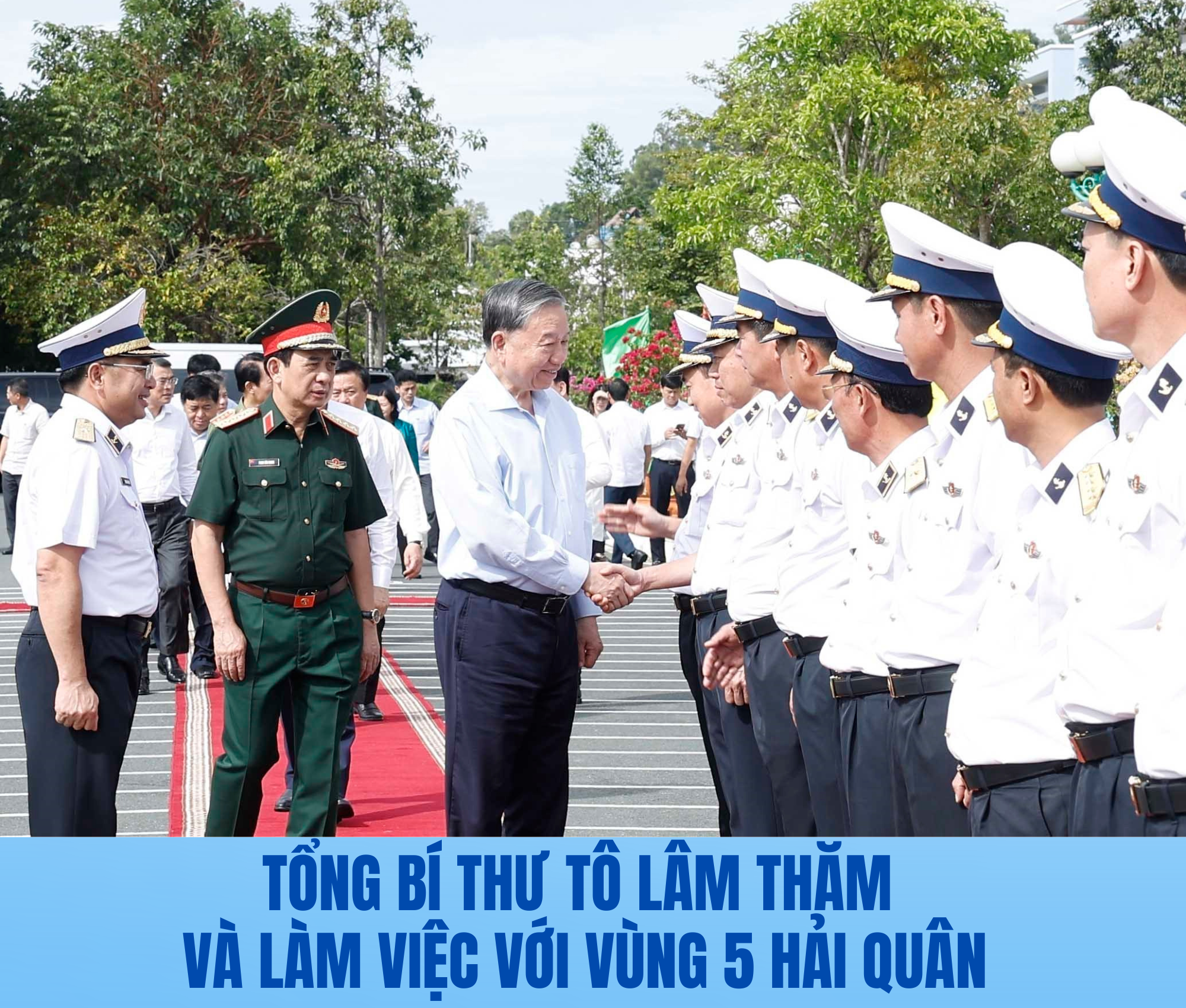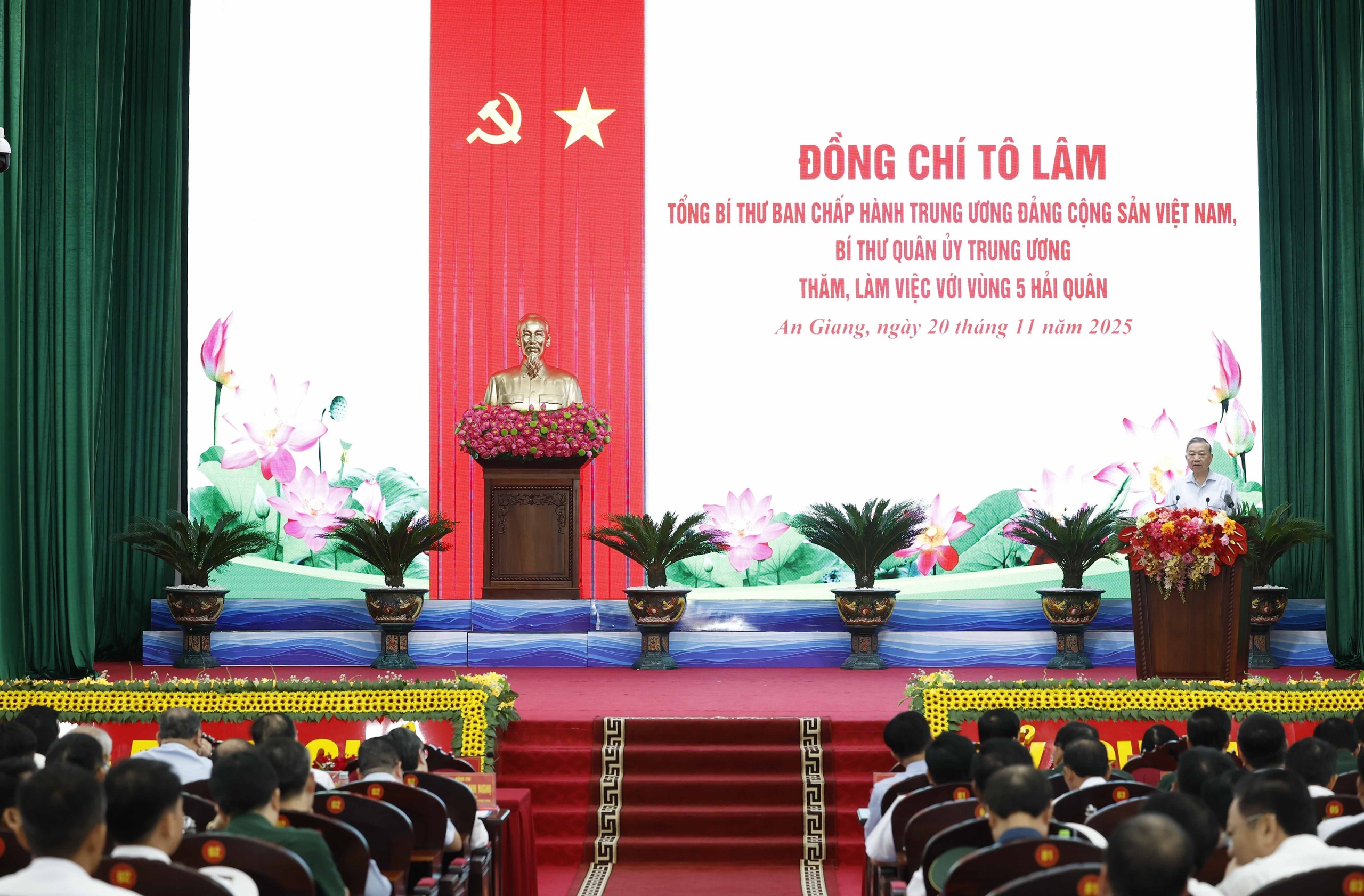 Sáng 20/11/2025, tại Đặc khu Phú Quốc, tỉnh An Giang, Tổng Bí thư Tô Lâm, Bí thư Quân uỷ Trung ương cùng đoàn công tác Trung ương đến thăm, làm việc với Bộ Tư lệnh Vùng 5 Hải quân.