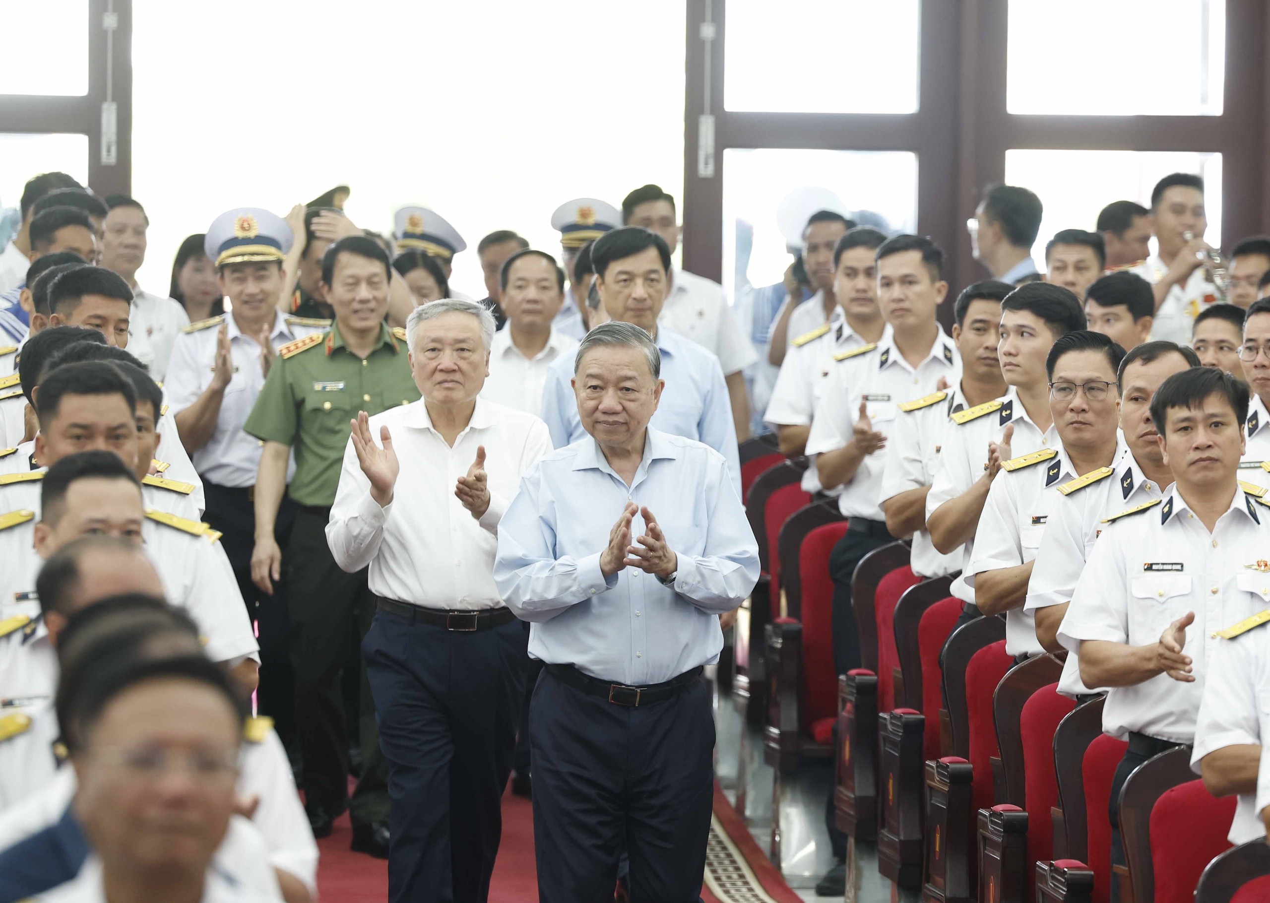 Tổng Bí thư Tô Lâm với lãnh đạo, sĩ quan Bộ Tư lệnh Vùng 5 Hải quân. Ảnh: Thống Nhất – TTXVN