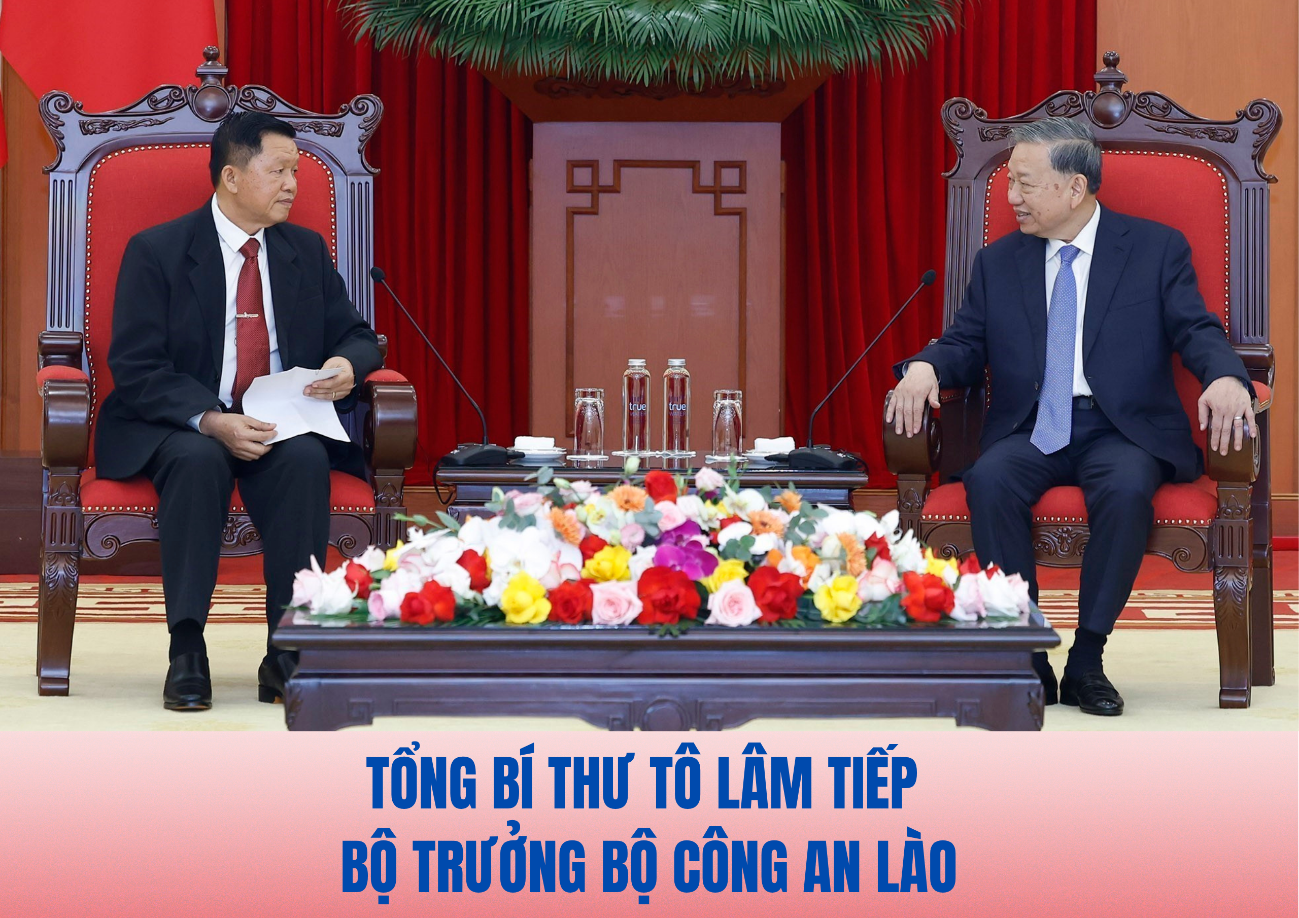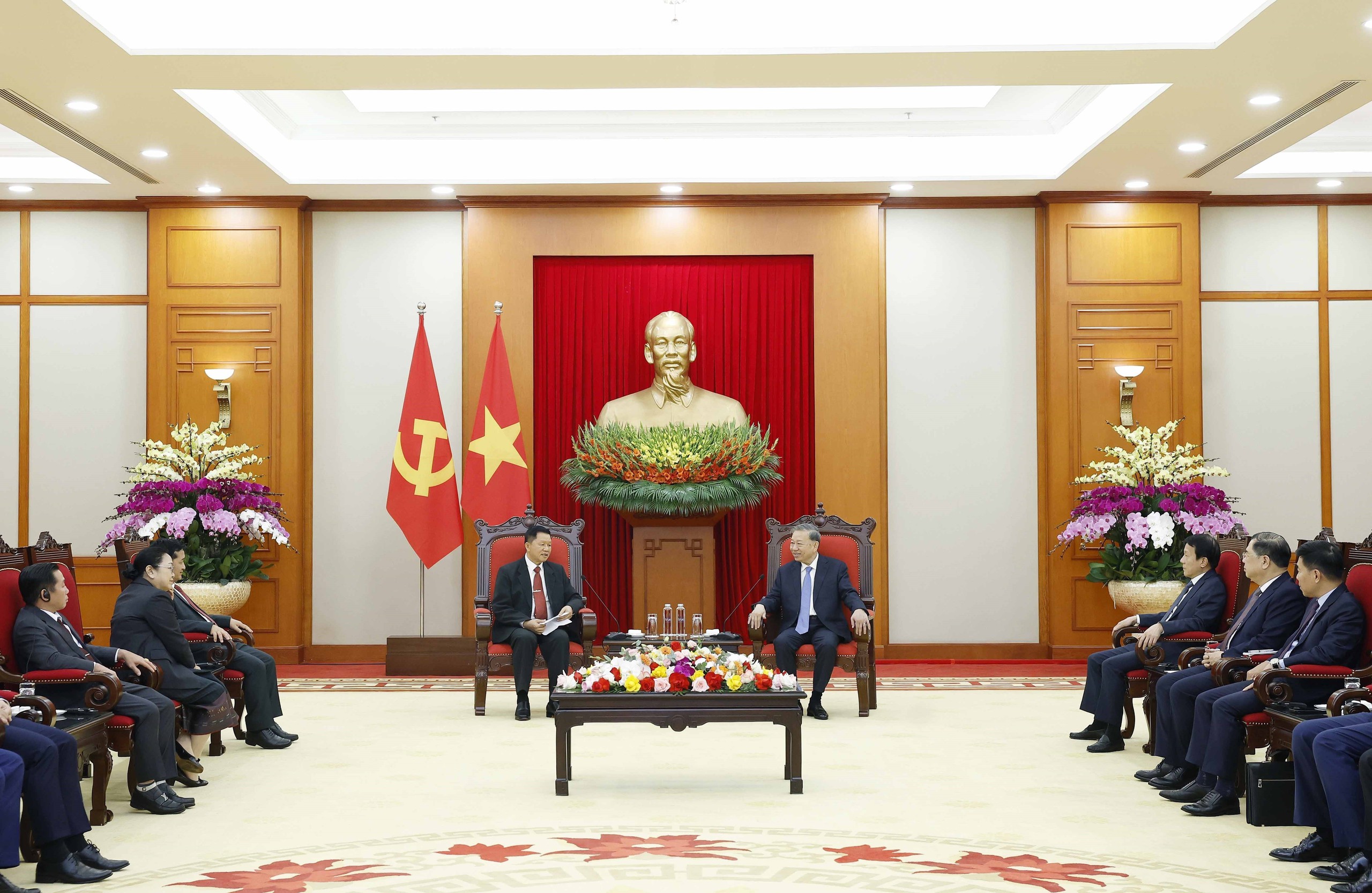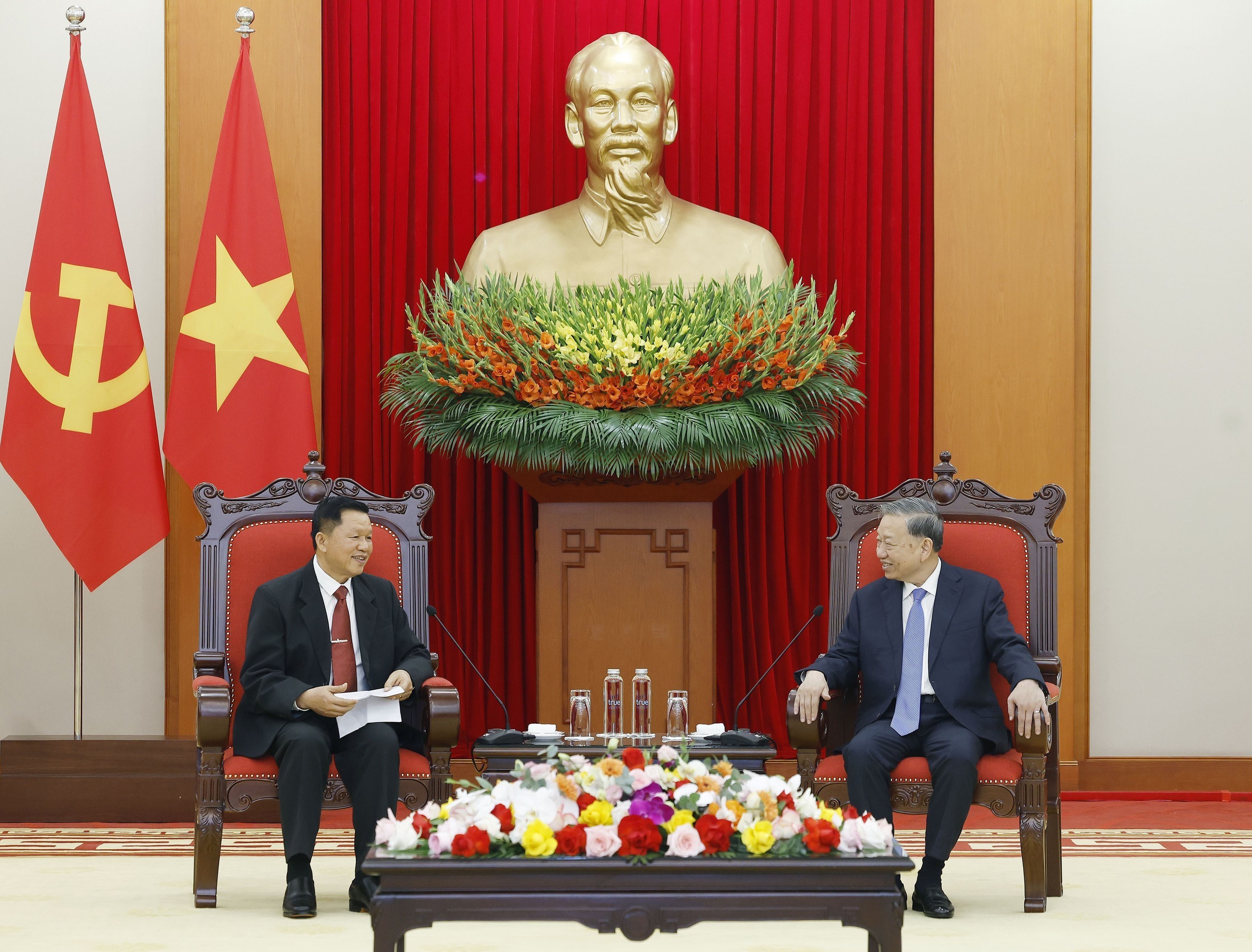 Tổng Bí thư Tô Lâm bày tỏ vui mừng về sự phát triển tốt đẹp của mối quan hệ Việt Nam – Lào, trong đó có sự đóng góp rất quan trọng của lực lượng an ninh hai nước; khẳng định Việt Nam luôn coi trọng và dành ưu tiên cao nhất cho việc củng cố và tăng cường quan hệ hữu nghị vĩ đại, đoàn kết đặc biệt, hợp tác toàn diện, gắn kết chiến lược Việt Nam – Lào, coi đây là nhiệm vụ chiến lược, có ý nghĩa sống còn đối với sự phát triển của mỗi nước; nhấn mạnh Việt Nam trước sau như một luôn ủng hộ Lào phát triển, sẵn sàng chia sẻ kinh nghiệm với Lào trên tất cả các lĩnh vực, hai nước Việt Nam – Lào sẽ nắm chặt tay vững bước cùng nhau phát triển.