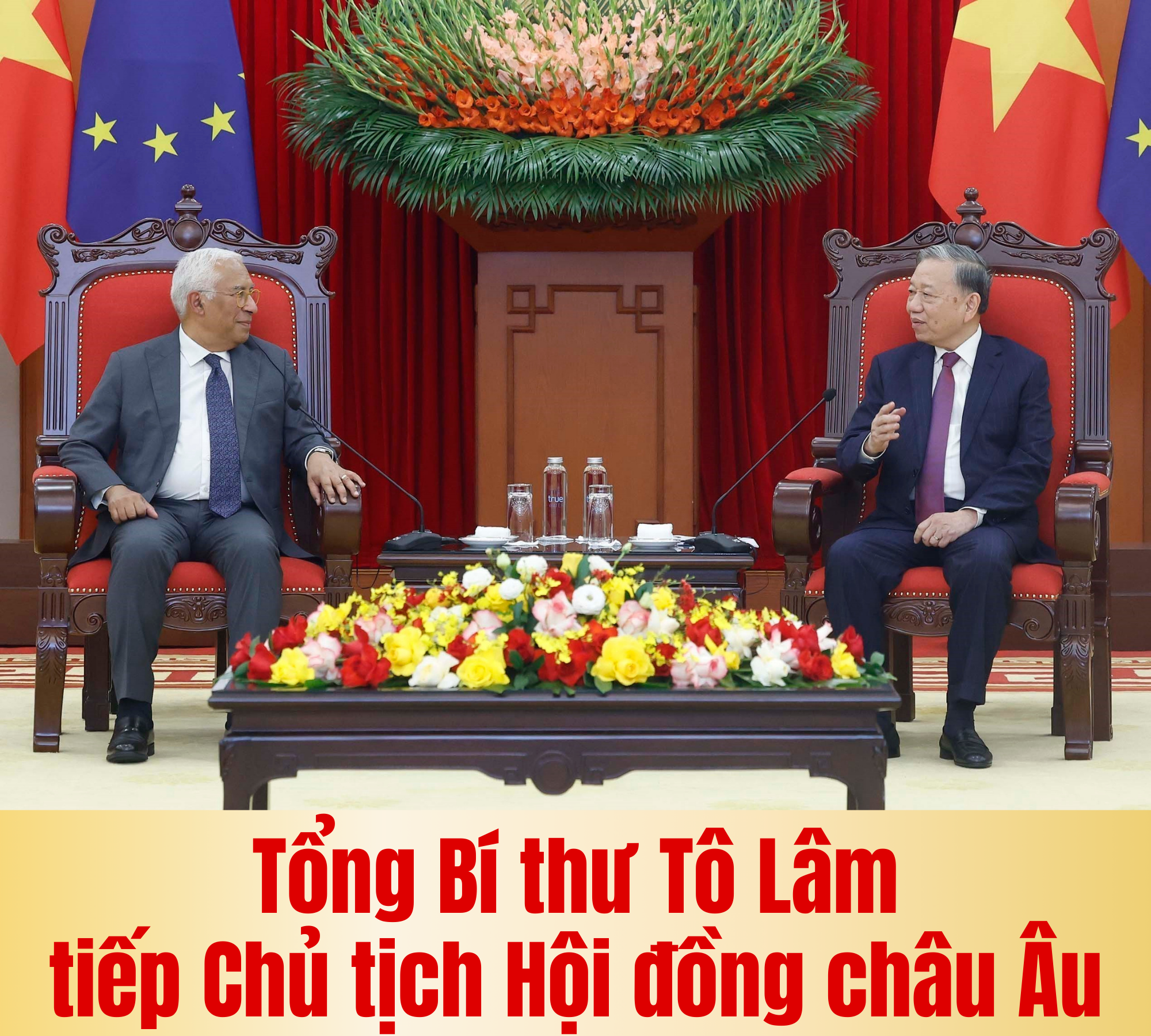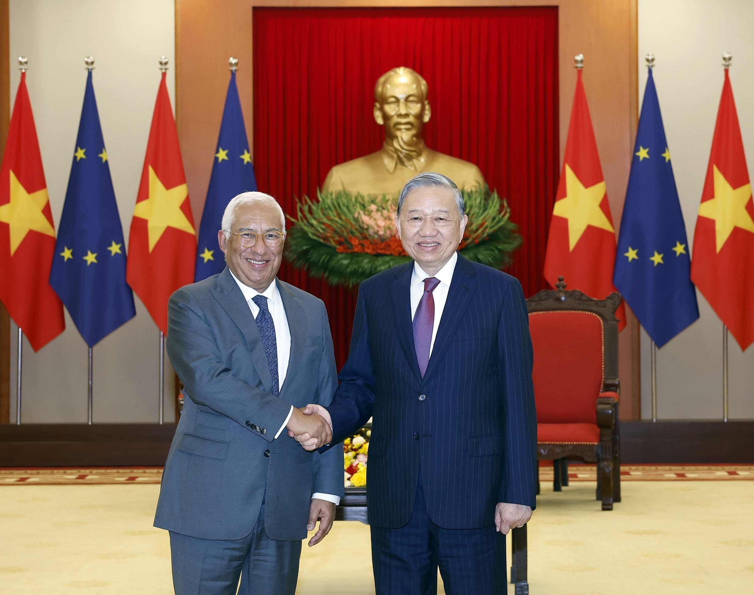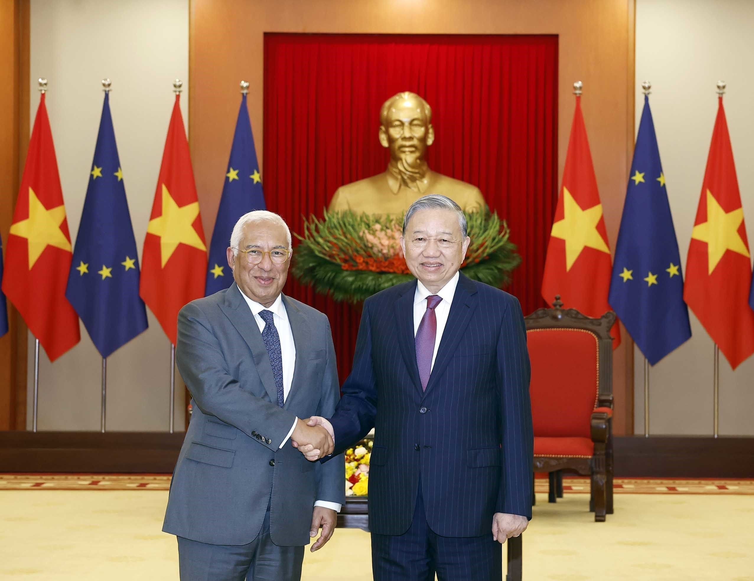 Tối 29/1, tại Trung tâm Hội nghị Quốc tế, Chủ tịch nước Lương Cường đã chủ trì chiêu đãi trọng thể Chủ tịch Hội đồng châu Âu António Costa cùng đoàn cấp cao Liên minh châu Âu (EU) đang có chuyến thăm chính thức đến Việt Nam từ ngày 28 đến 29/1/2026.