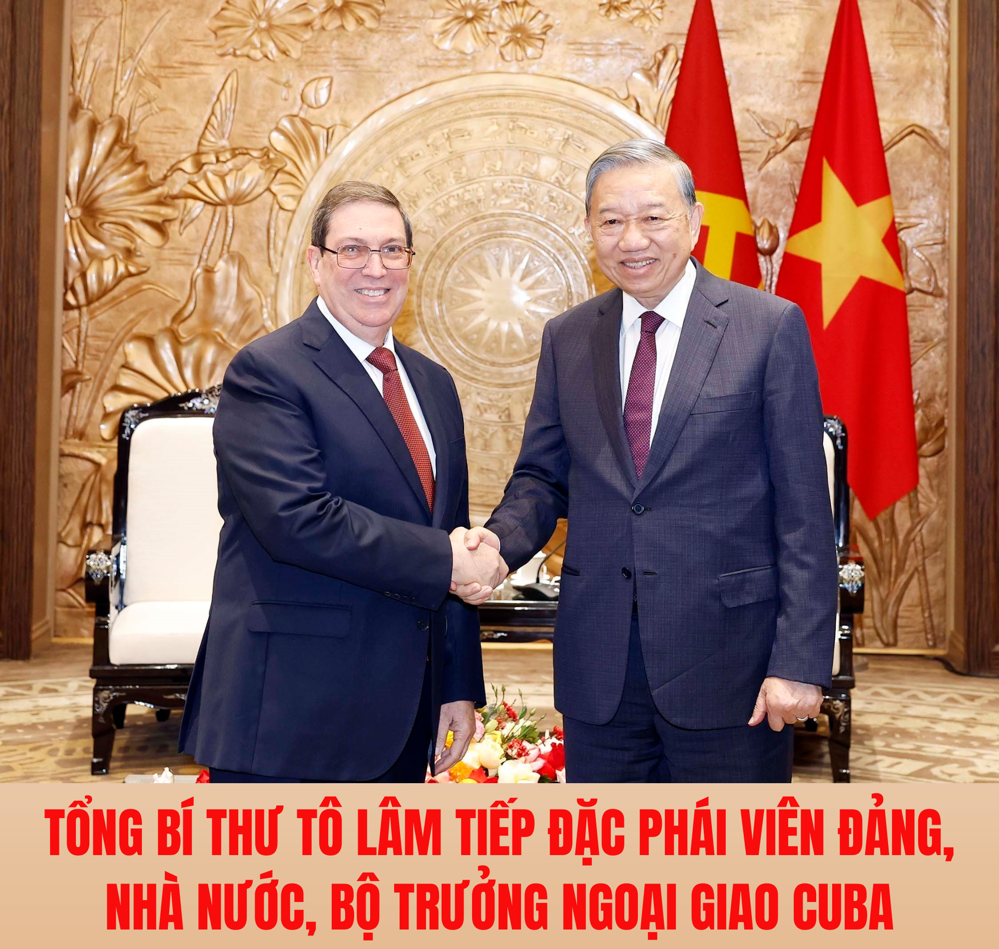 Chiều 2/2, tại Trụ sở Trung ương Đảng, đồng chí Tô Lâm, Tổng Bí thư Ban Chấp hành Trung ương Đảng Cộng sản Việt Nam đã có buổi tiếp thân mật đồng chí Đặc phái viên Đảng Cộng sản Cuba, Nhà nước Cộng hòa Cuba, Ủy viên Bộ Chính trị, Bộ trưởng Ngoại giao Bruno Rodríguez Parrilla trong khuôn khổ chuyến thăm Việt Nam từ ngày 1-3/2/2026.