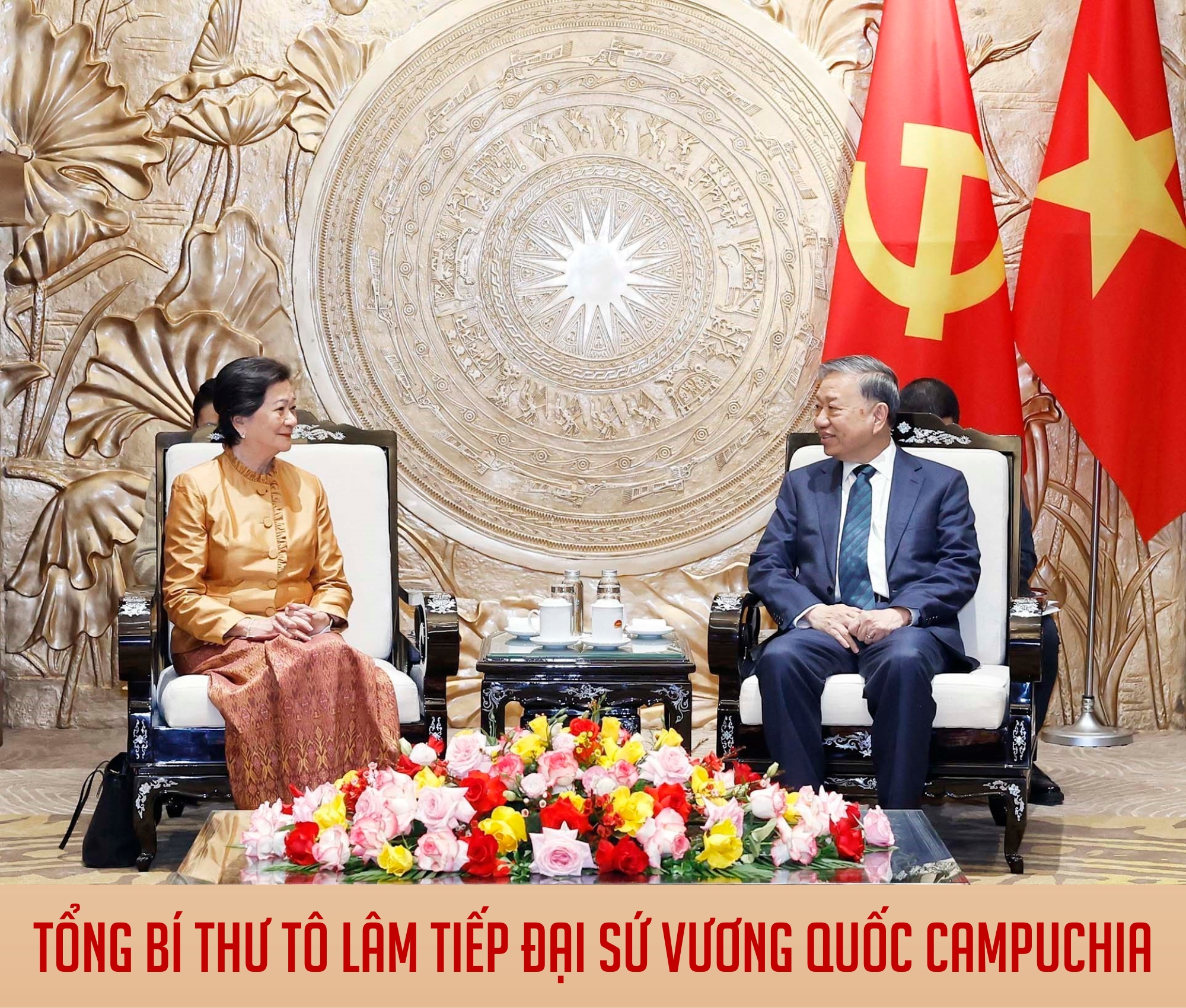 Tổng Bí thư Tô Lâm tiếp Đại sứ Vương quốc Campuchia tại Việt Nam Chea Kimtha. Ảnh: Thống Nhất - TTXVN