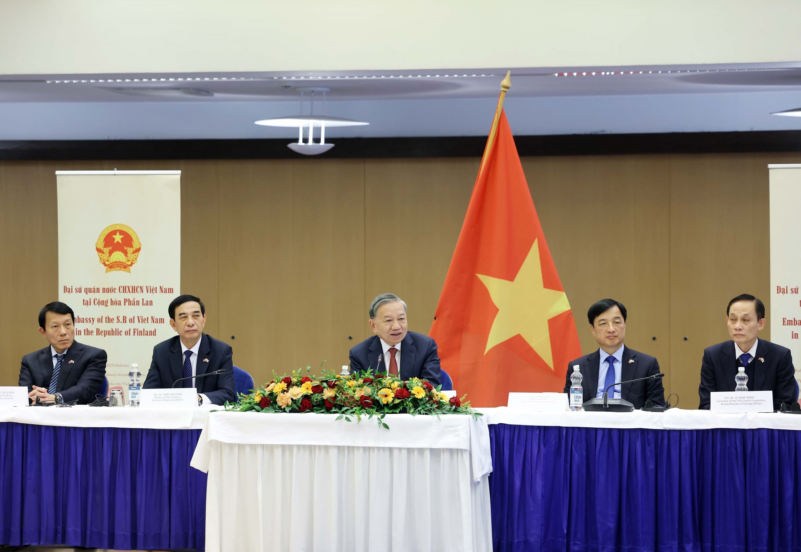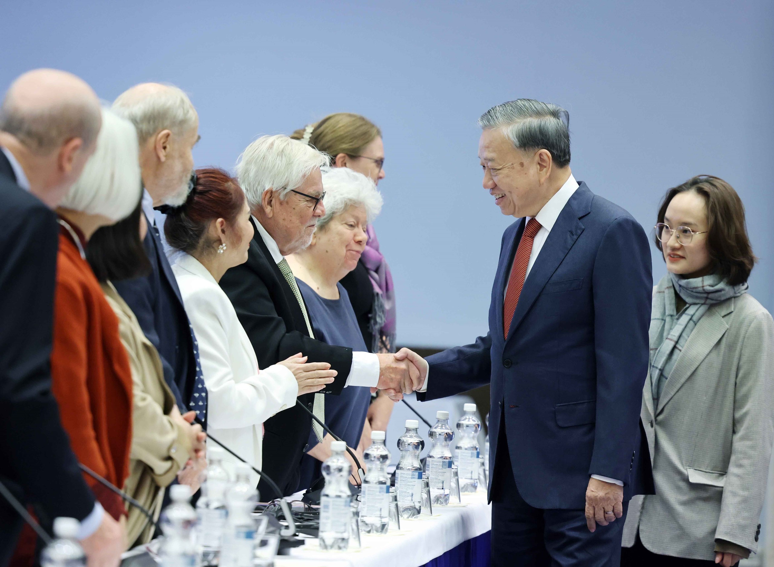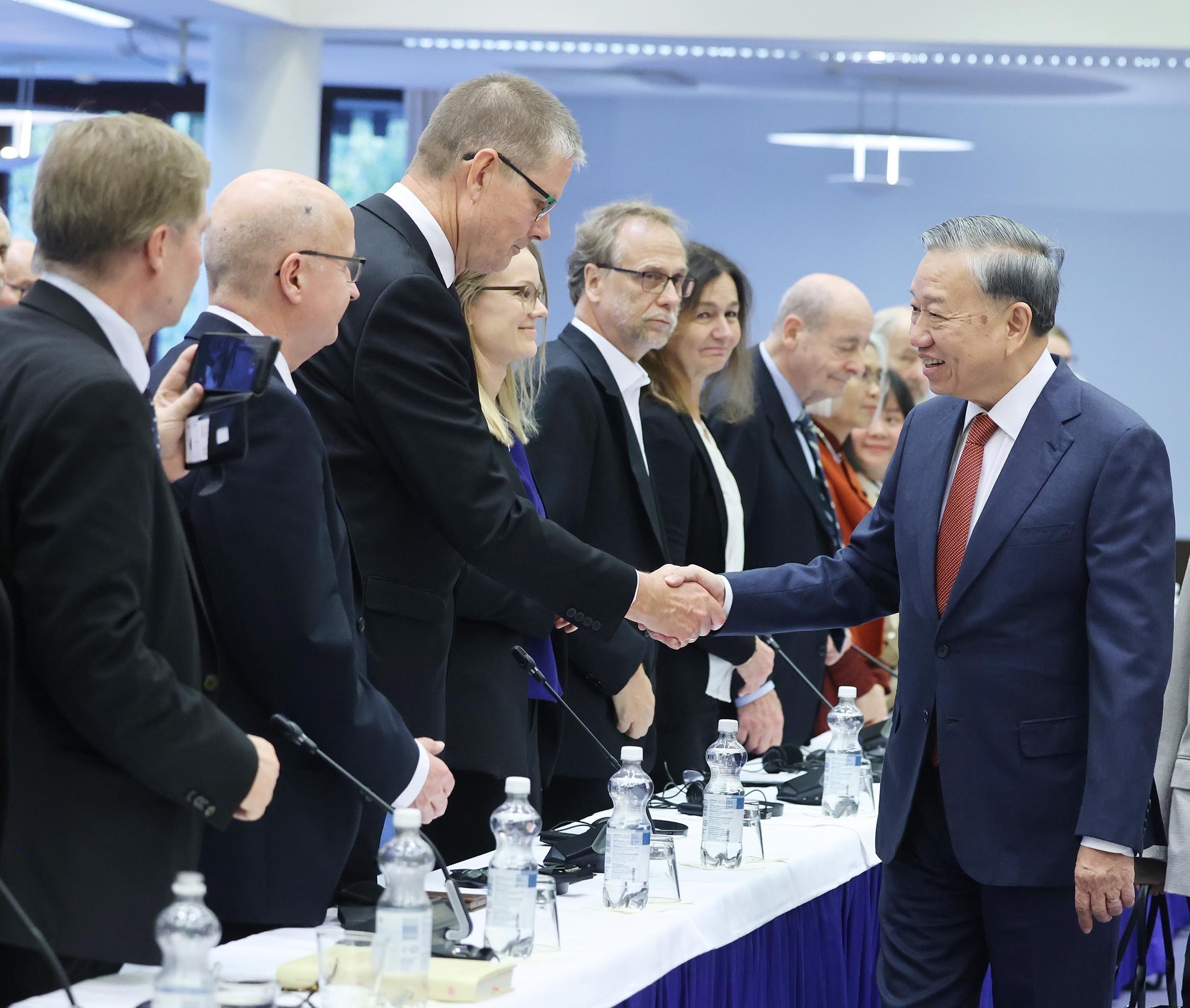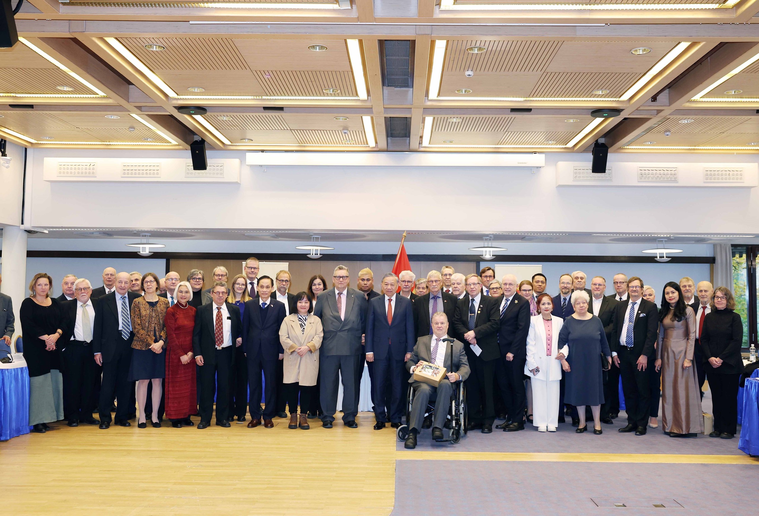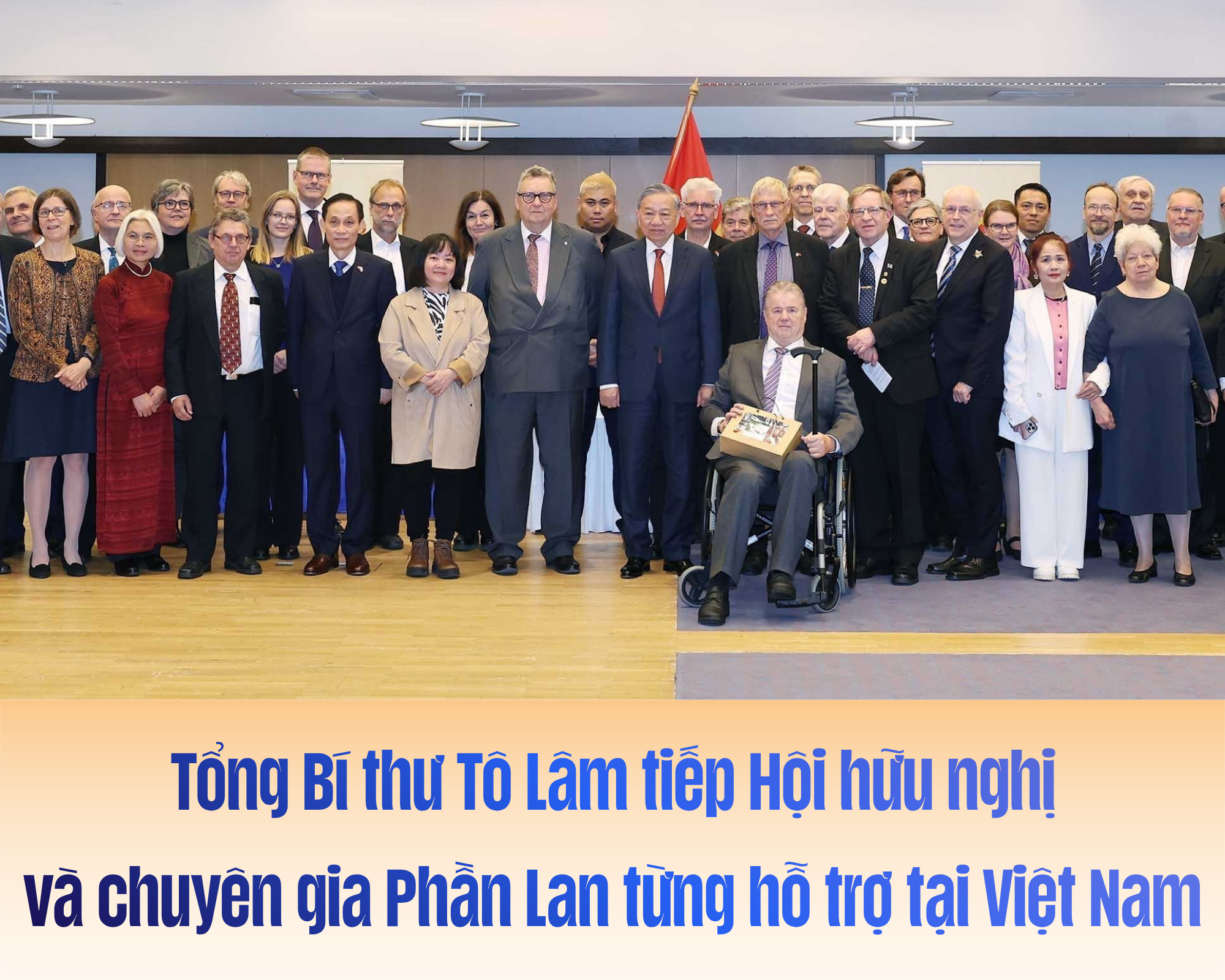 Trong chương trình chuyến thăm chính thức Phần Lan, chiều 22/10/2025 (theo giờ địa phương), tại Thủ đô Helsinki, Tổng Bí thư Tô Lâm tiếp Hội hữu nghị Phần Lan - Việt Nam và nhóm chuyên gia Phần Lan từng tham gia các dự án hỗ trợ tại Việt Nam.