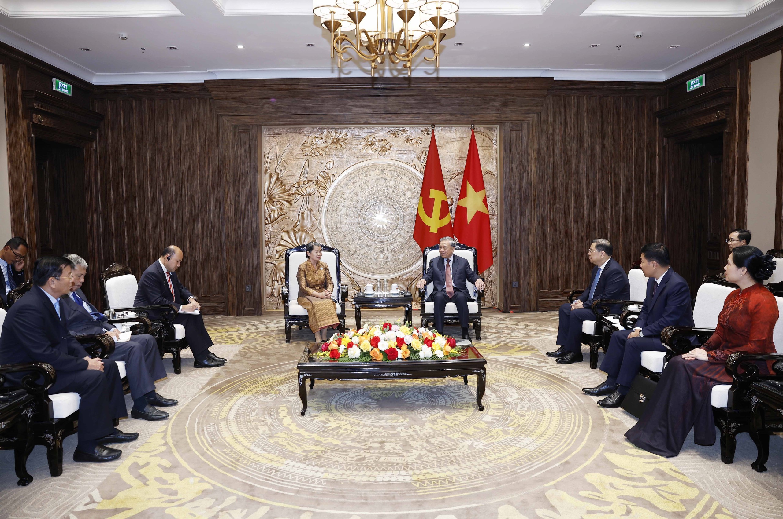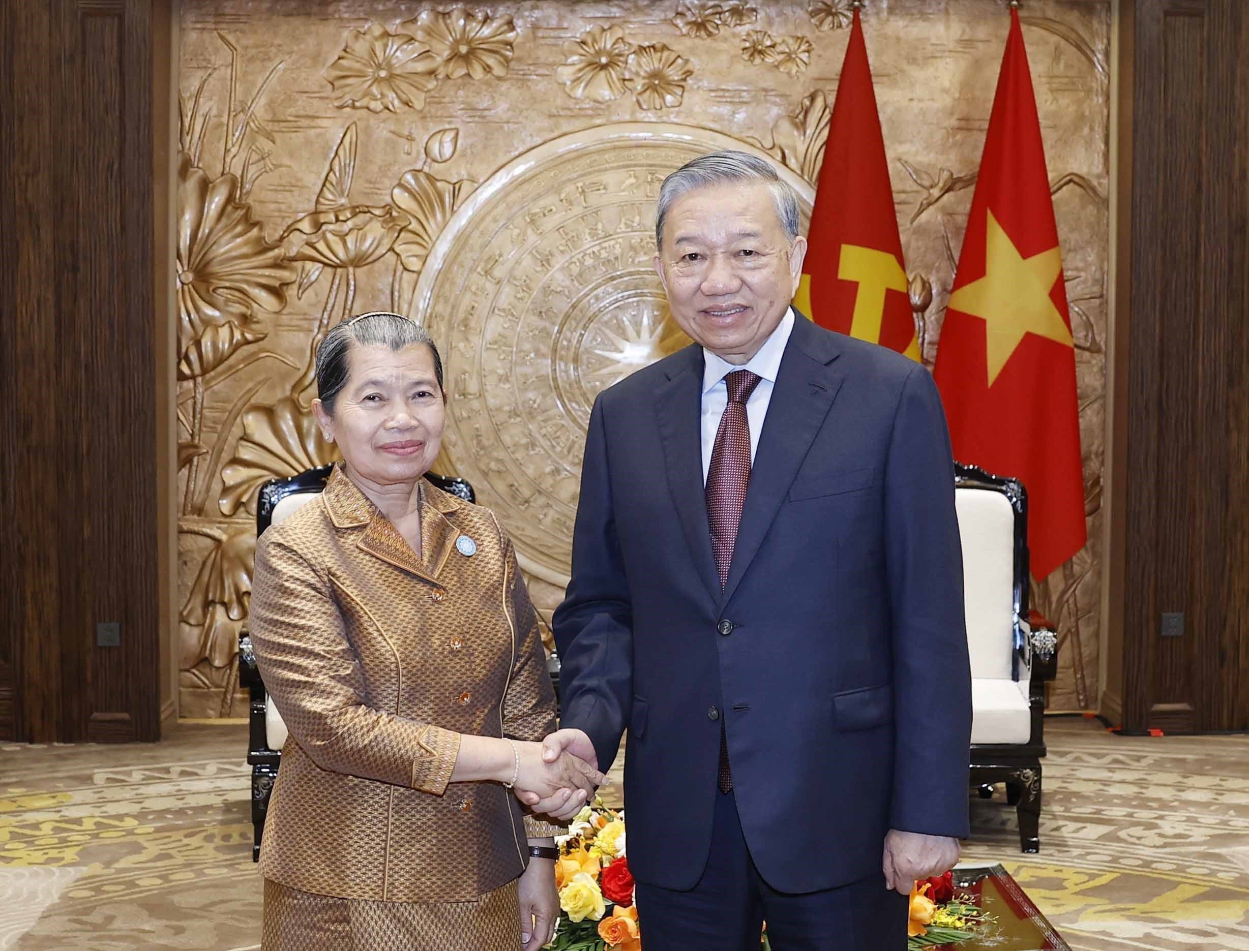 Tổng Bí thư Tô Lâm tiếp bà Men Sam An, Phó Chủ tịch Đảng Nhân dân Campuchia, Chủ tịch Hội đồng Quốc gia Mặt trận Đoàn kết Phát triển Tổ quốc Campuchia