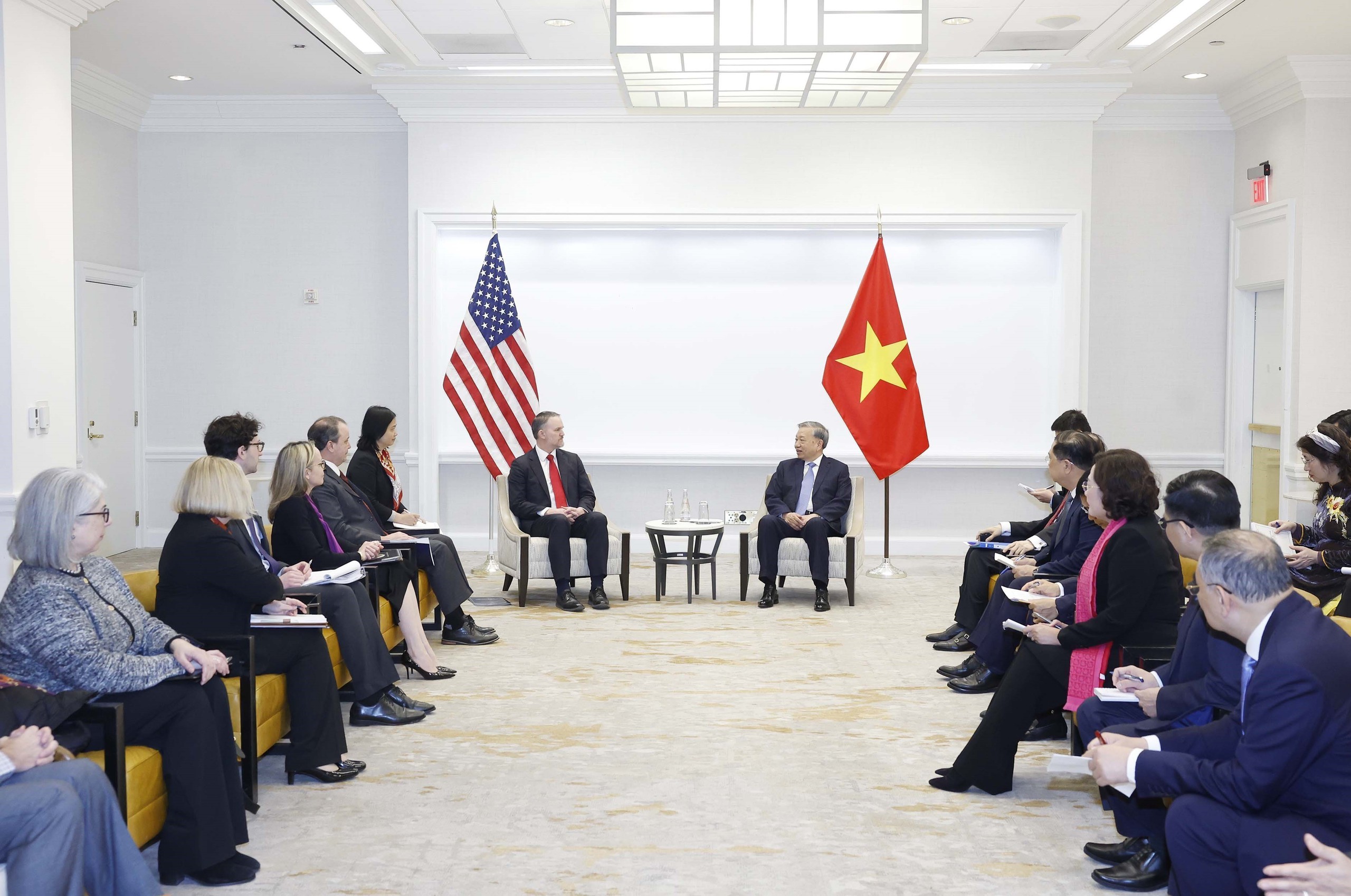 Tổng Bí thư hoan nghênh những kết quả tích cực đạt được trong tiến trình đàm phán hiệp định thương mại đối ứng; đánh giá cao vai trò của Cơ quan đại diện Thương mại Hoa Kỳ và sự quan tâm, ủng hộ của cá nhân Đại sứ Jamieson Greer. Tổng Bí thư cho biết các cơ quan của Việt Nam sẽ tiếp tục phối hợp chặt chẽ cùng phía Hoa Kỳ để hai bên có thể sớm hoàn tất thỏa thuận.
