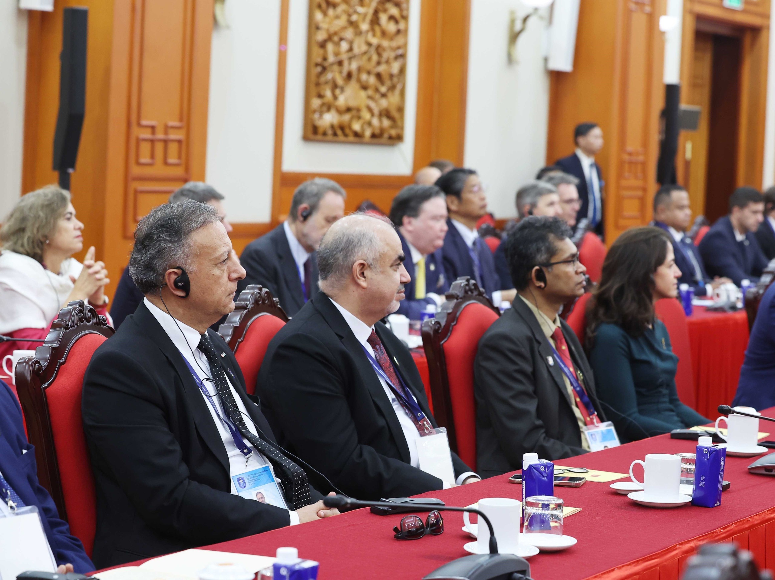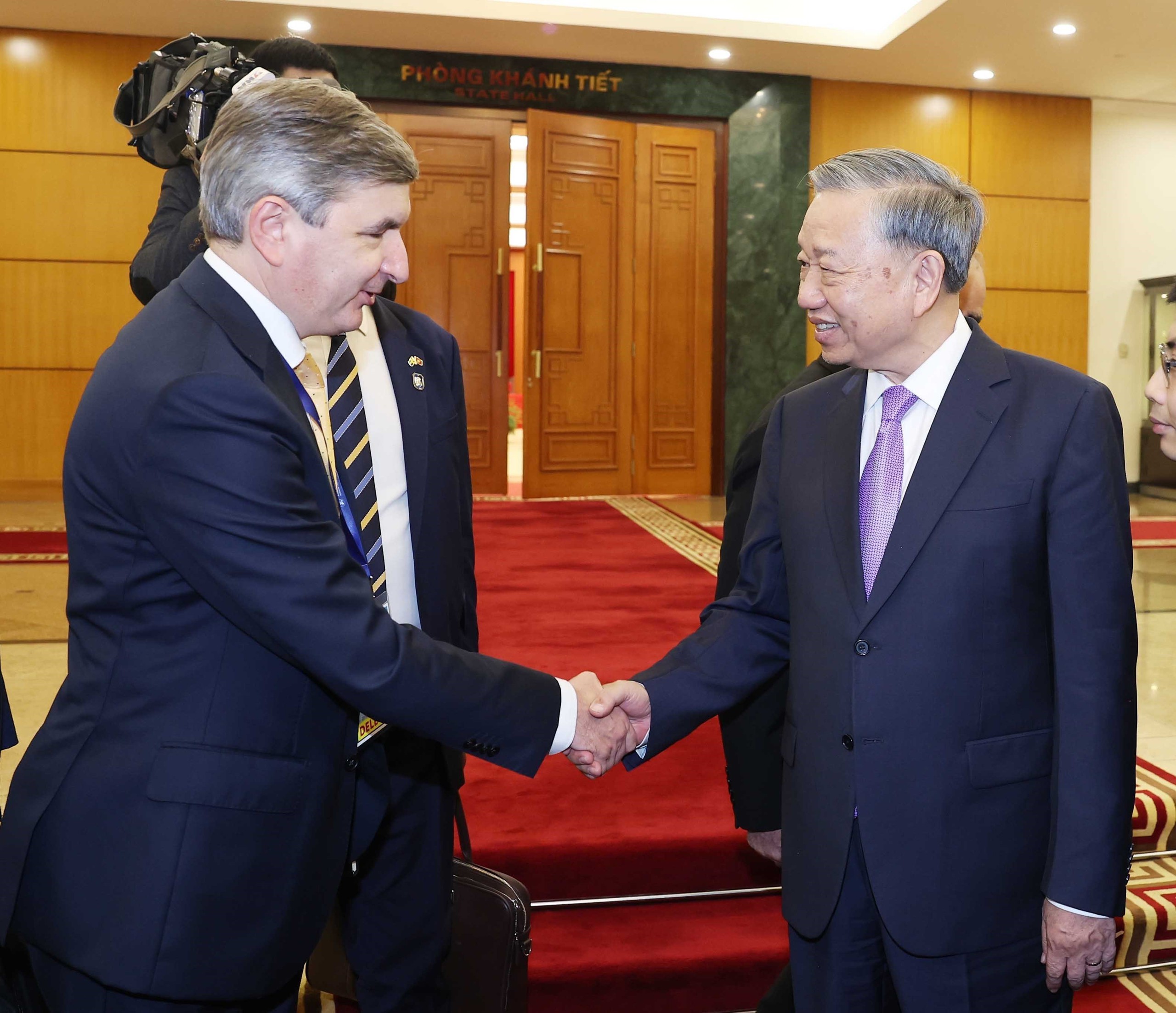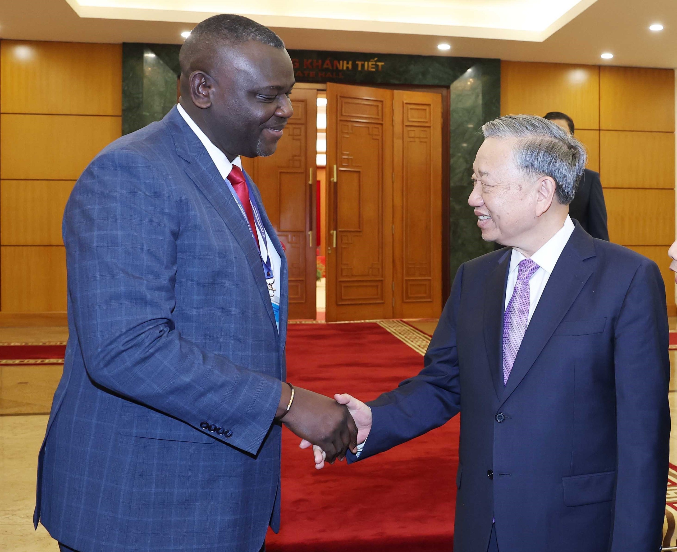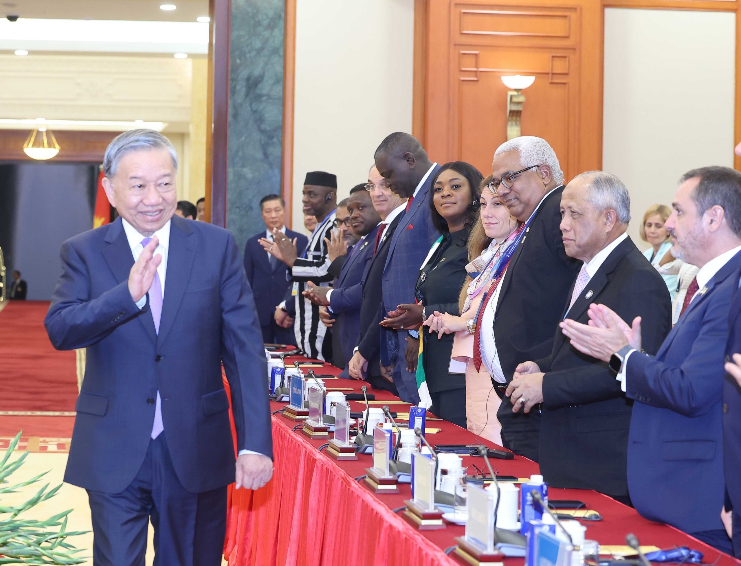 Tại buổi tiếp, Tổng Bí thư Tô Lâm nhấn mạnh sự tham dự của đại diện các quốc gia và các tổ chức quốc tế tại sự kiện có ý nghĩa toàn cầu này là minh chứng sống động cho tinh thần đoàn kết quốc tế để cùng đối phó với một thách thức chung của nhân loại và cũng khẳng định mối quan hệ hữu nghị và hợp tác bền chặt giữa Việt Nam và các quốc gia, các dân tộc trên thế giới.