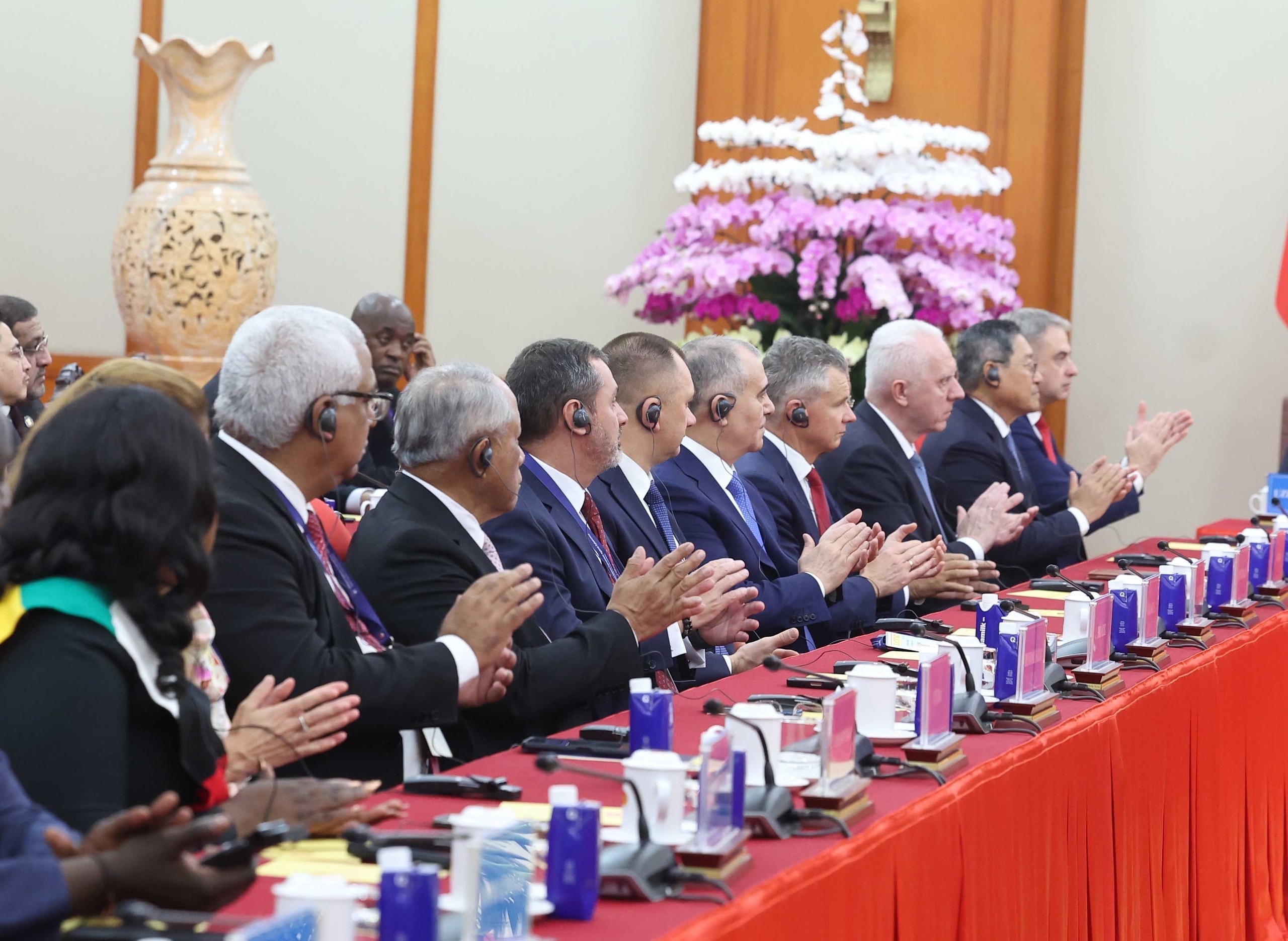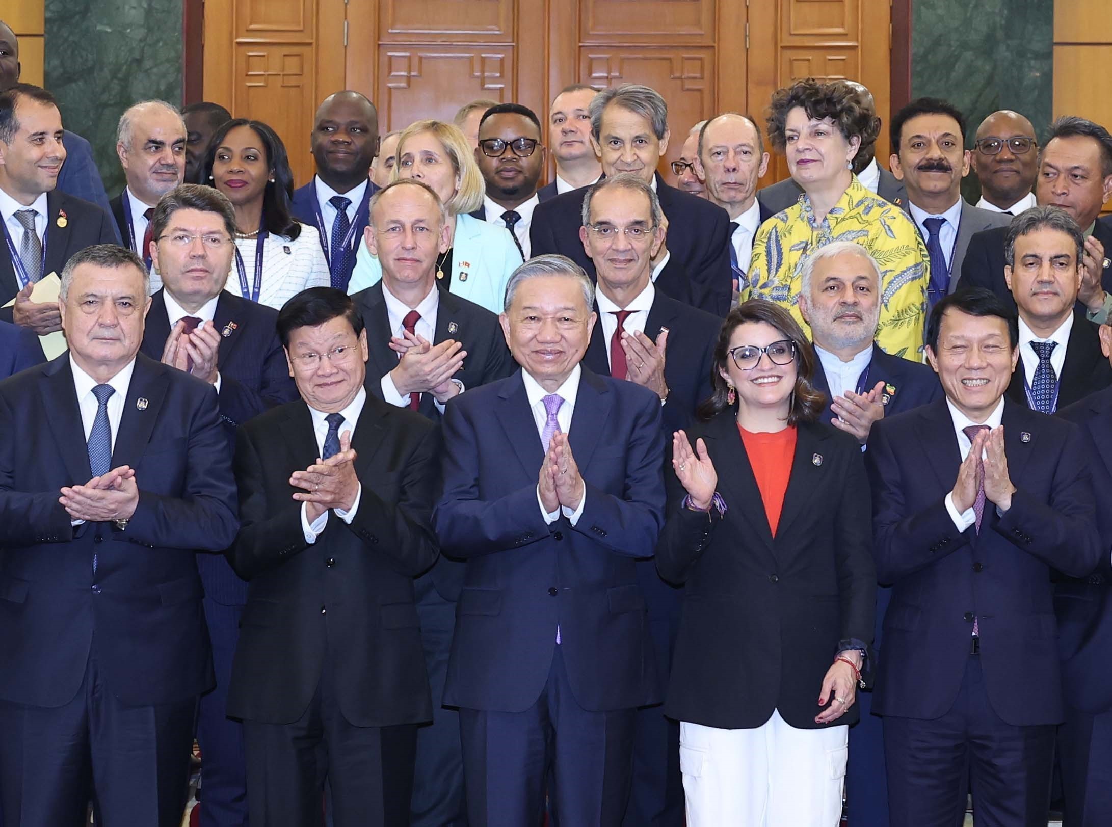 Trưởng đoàn các nước tham dự Lễ mở ký Công ước Hà Nội tham dự cuộc gặp Tổng Bí thư Tô Lâm. Ảnh: Thống Nhất – TTXVN