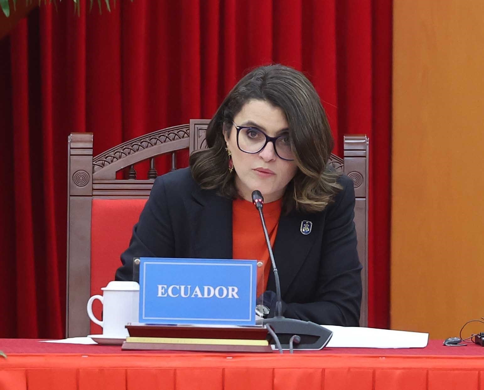 Phó Tổng thống Ecuador María José Pinto González Artigas phát biểu tại buổi gặp Tổng Bí thư Tô Lâm. Ảnh: Thống Nhất – TTXVN