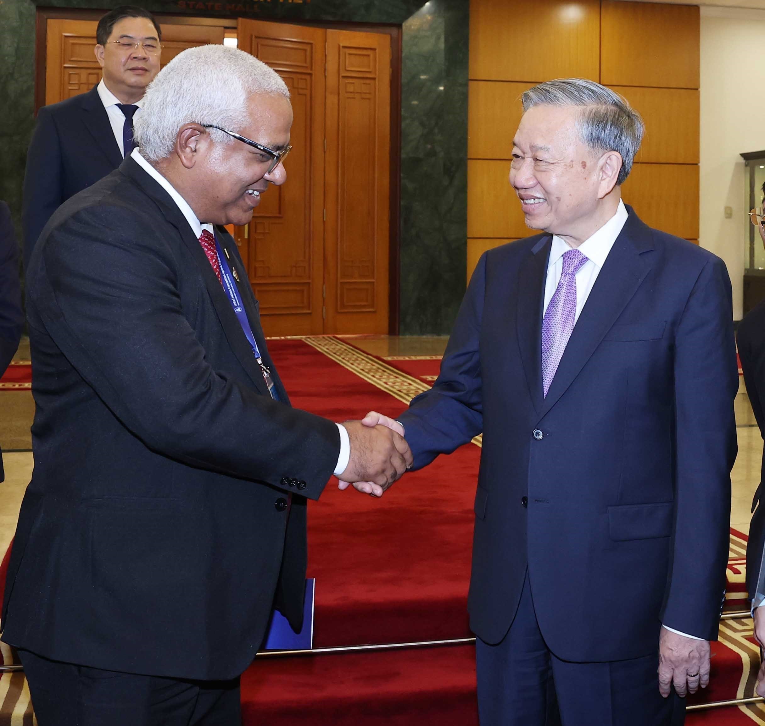 Tổng Bí thư Tô Lâm tiếp Trưởng đoàn các nước tham dự Lễ mở ký Công ước Liên hợp quốc về chống tội phạm mạng. Ảnh: Thống Nhất – TTXVN