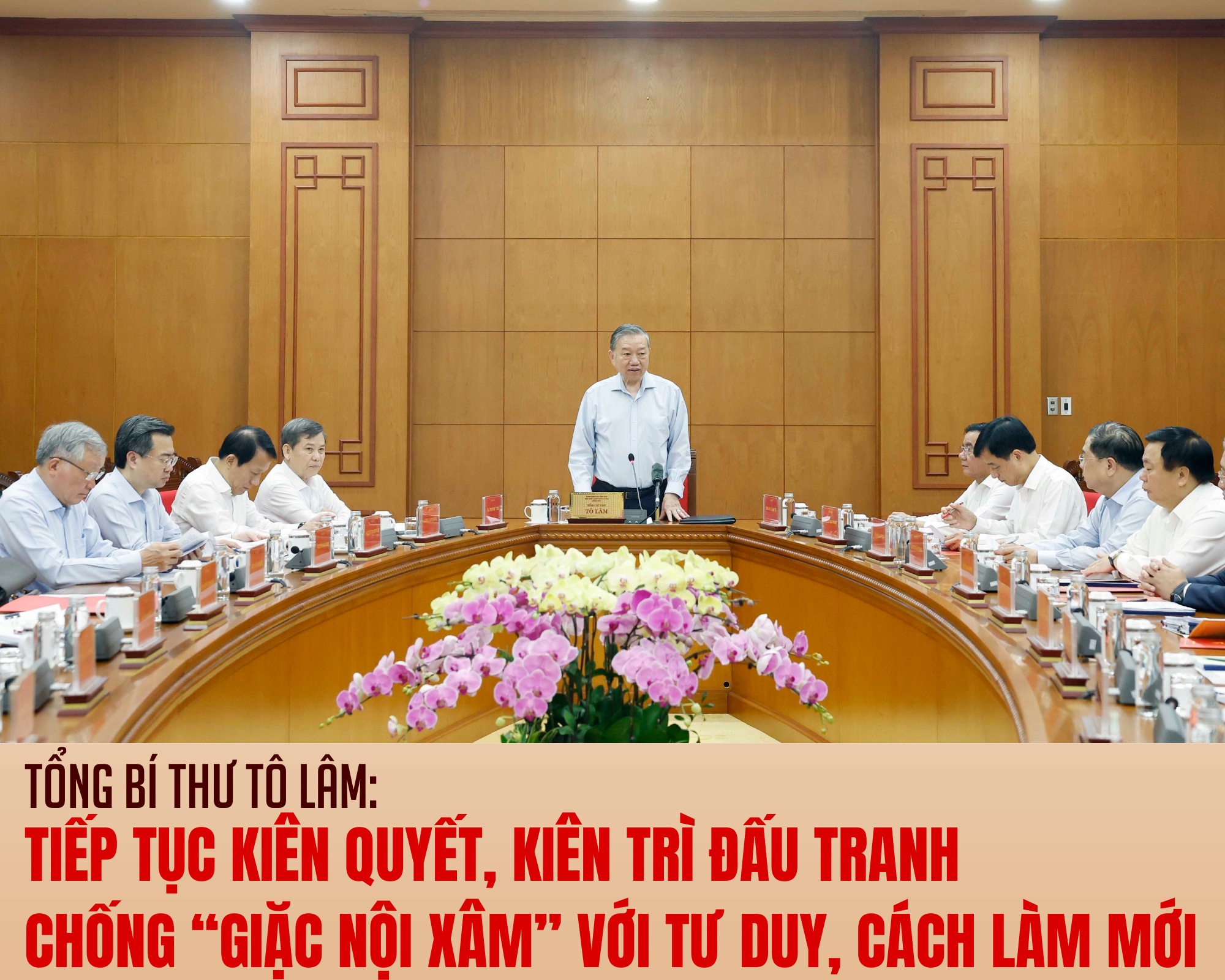 Tổng Bí thư nhấn mạnh, phòng, chống tham nhũng, lãng phí, tiêu cực là nhiệm vụ đặc biệt quan trọng, thường xuyên, lâu dài của công tác xây dựng, chỉnh đốn Đảng và hệ thống chính trị. Kiên quyết, kiên trì đấu tranh ngăn chặn, đẩy lùi tham nhũng, lãng phí, tiêu cực là chủ trương, đường lối xuyên suốt, nhất quán của Đảng, Nhà nước ta. Việc ban hành Nghị quyết về tăng cường sự lãnh đạo của Đảng đối với công tác Phòng, chống tham nhũng, lãng phí, tiêu cực trong giai đoạn mới tại Hội nghị Trung ương 2 khóa XIV, khẳng định sự quan tâm đặc biệt của Đảng, là "tuyên ngôn" của Đảng về tiếp tục kiên quyết, kiên trì đẩy mạnh công cuộc đấu tranh chống "giặc nội xâm" trong giai đoạn tới với tư duy, cách làm mới.