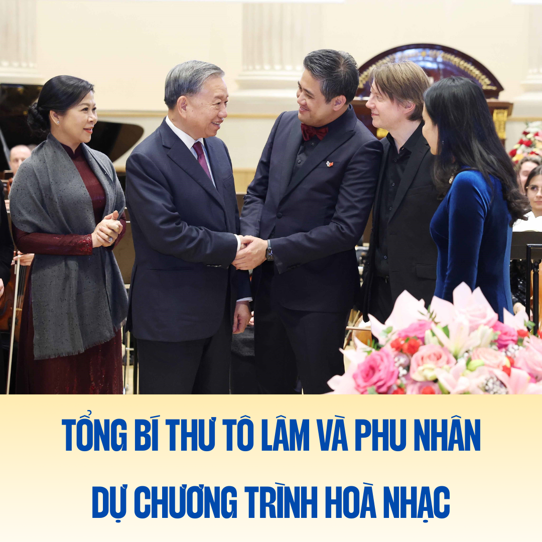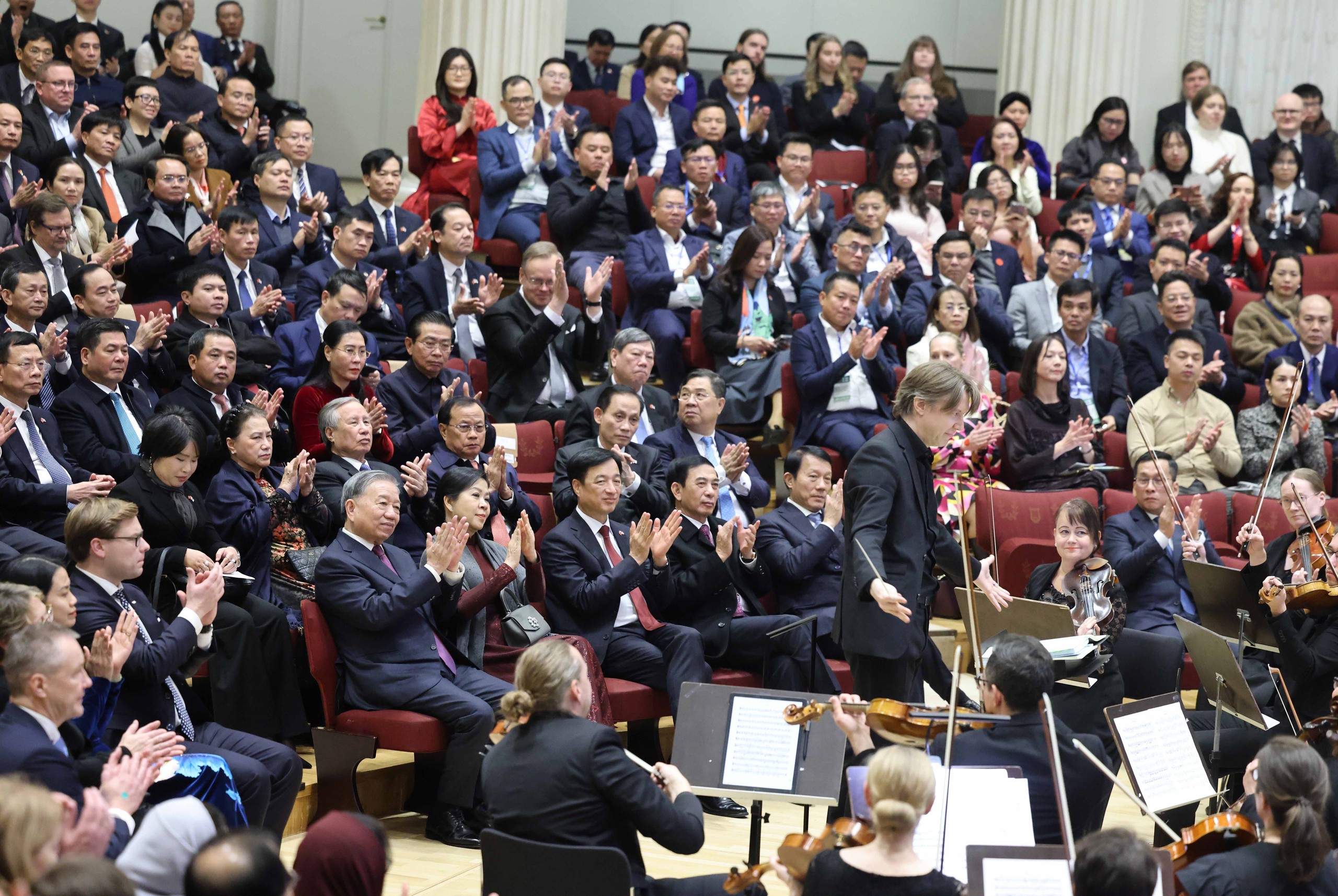 Trong chuyến thăm chính thức Phần Lan, tối 21/10/2025 (giờ địa phương), tại thủ đô Helsinki, Tổng Bí thư Tô Lâm và Phu nhân cùng đoàn đại biểu cấp cao Việt Nam dự Chương trình hoà nhạc đặc biệt do Đại sứ quán Việt Nam tại Phần Lan và Thành phố Helsinki phối hợp tổ chức.