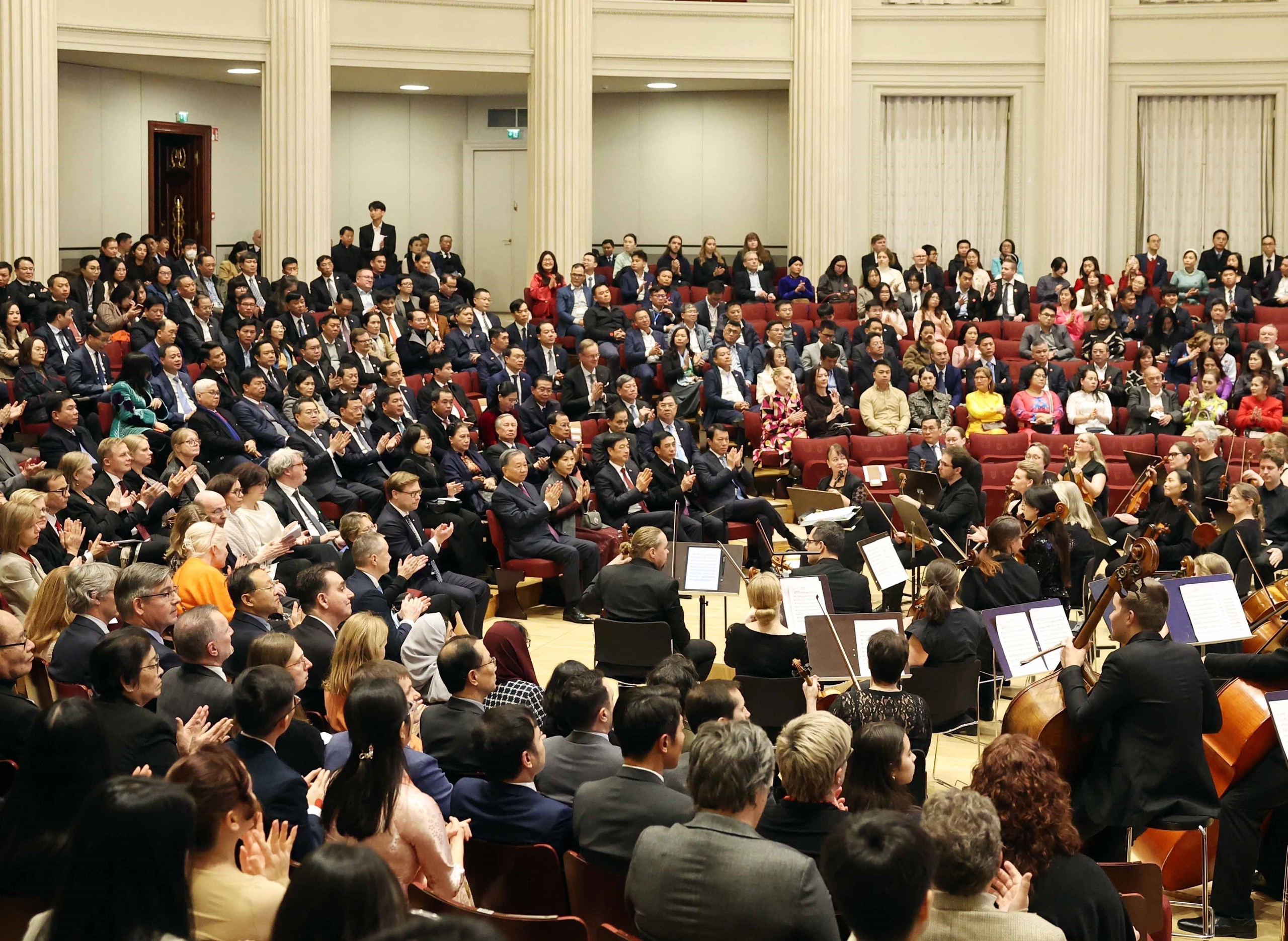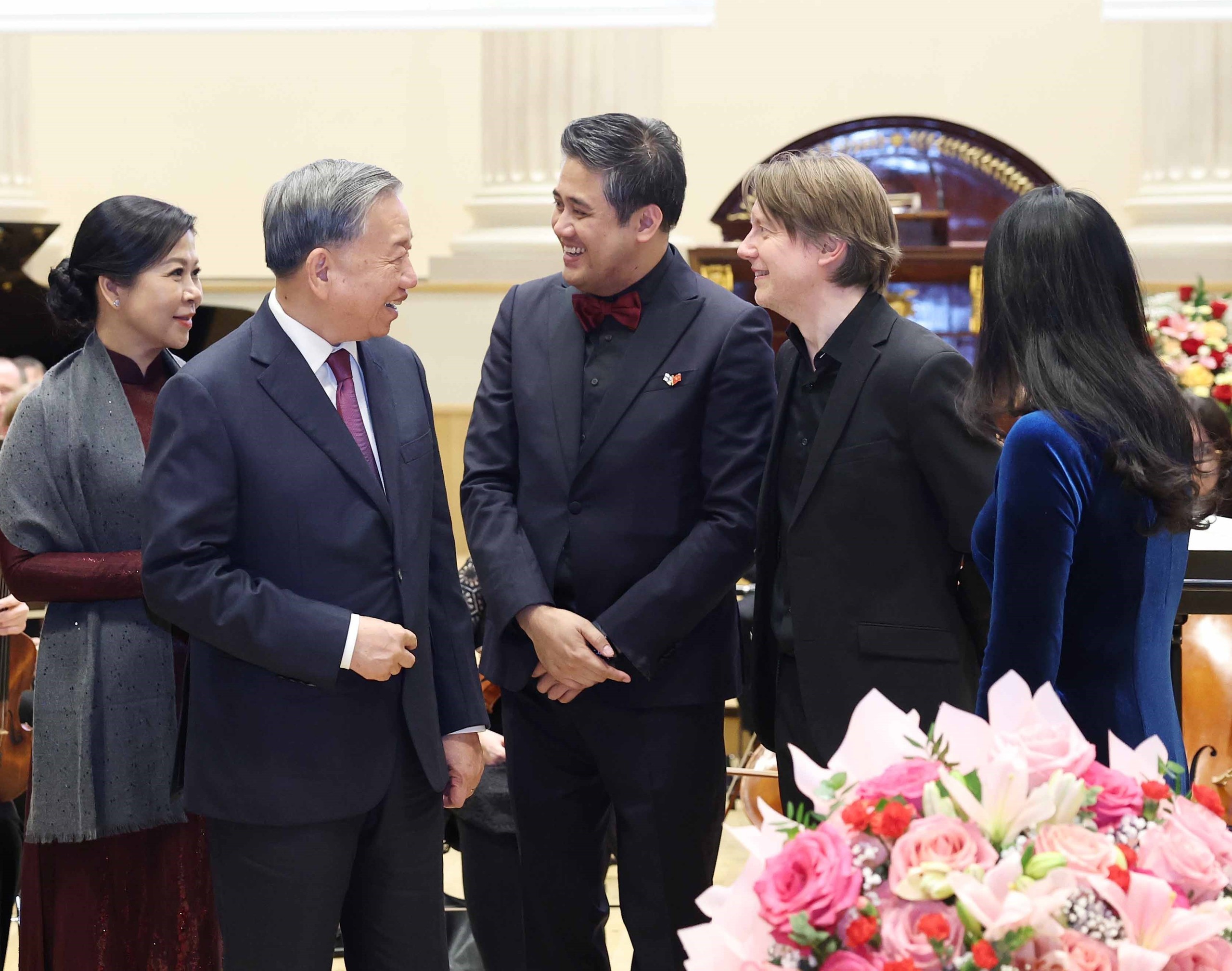 Tổng Bí thư Tô Lâm và Phu nhân cùng đoàn đại biểu cấp cao Việt Nam dự Chương trình hoà nhạc đặc biệt. Ảnh: Thống Nhất – TTXVN