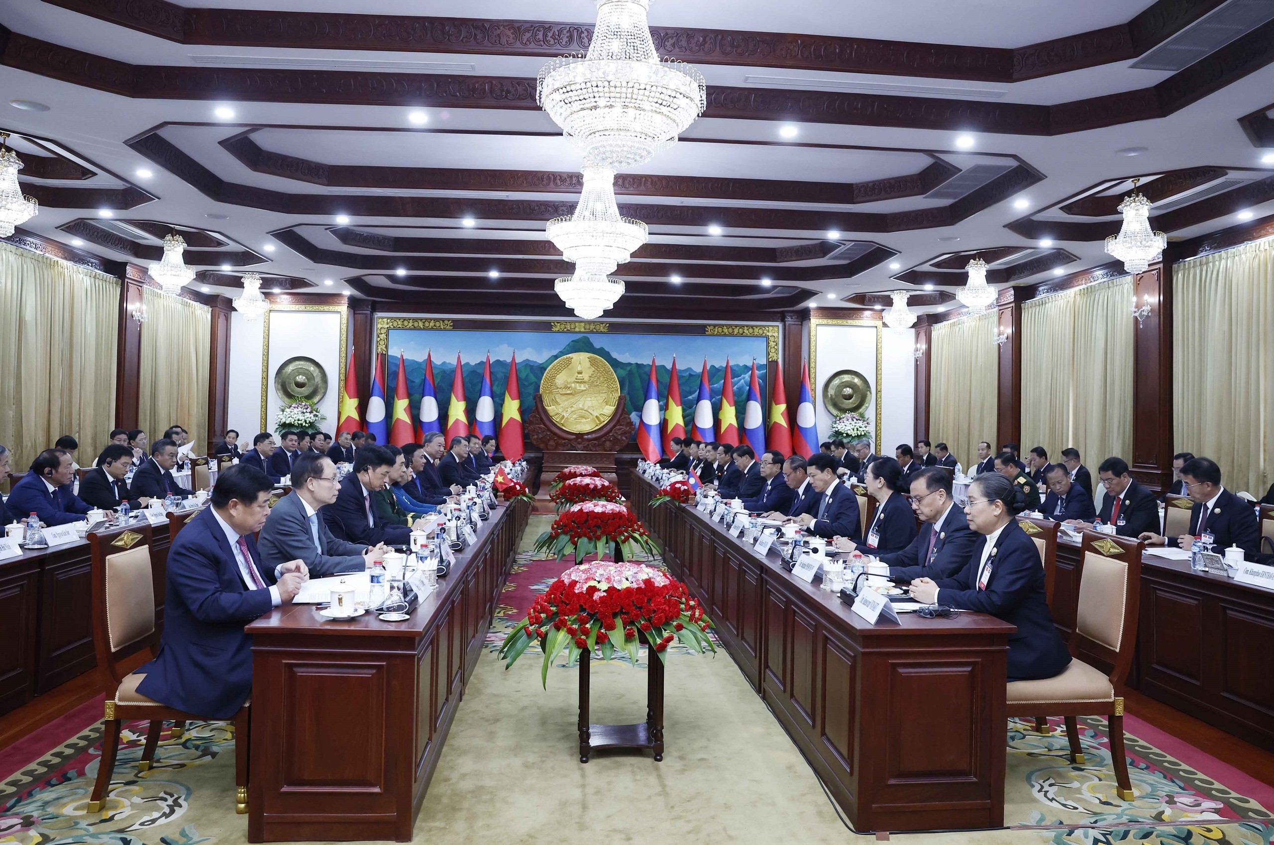 Tổng Bí thư Tô Lâm hội đàm với Tổng Bí thư, Chủ tịch nước Lào Thongloun Sisoulith. Ảnh: Thống NhấtTTXVN
