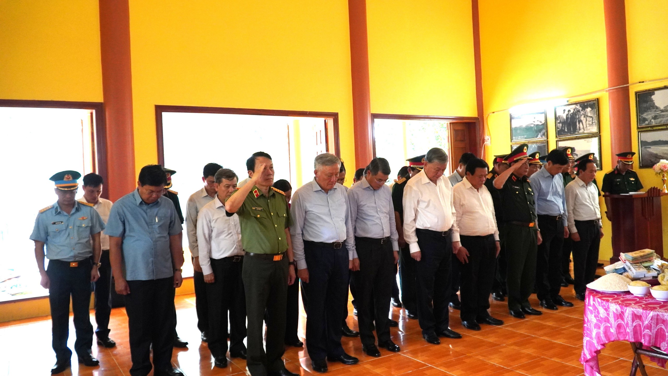 Tổng Bí thư Tô Lâm cùng đoàn công tác dâng hương tưởng niệm Chủ tịch Hồ Chí Minh và các Anh hùng liệt sĩ tại Đền thờ Thổ Châu. Ảnh: Văn Sĩ - TTXVN