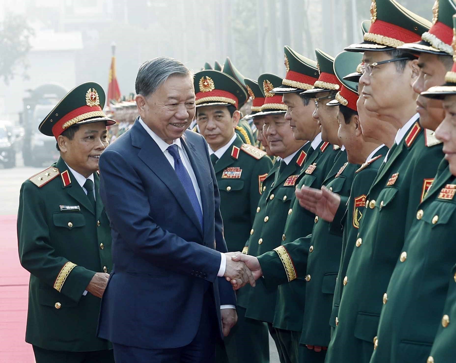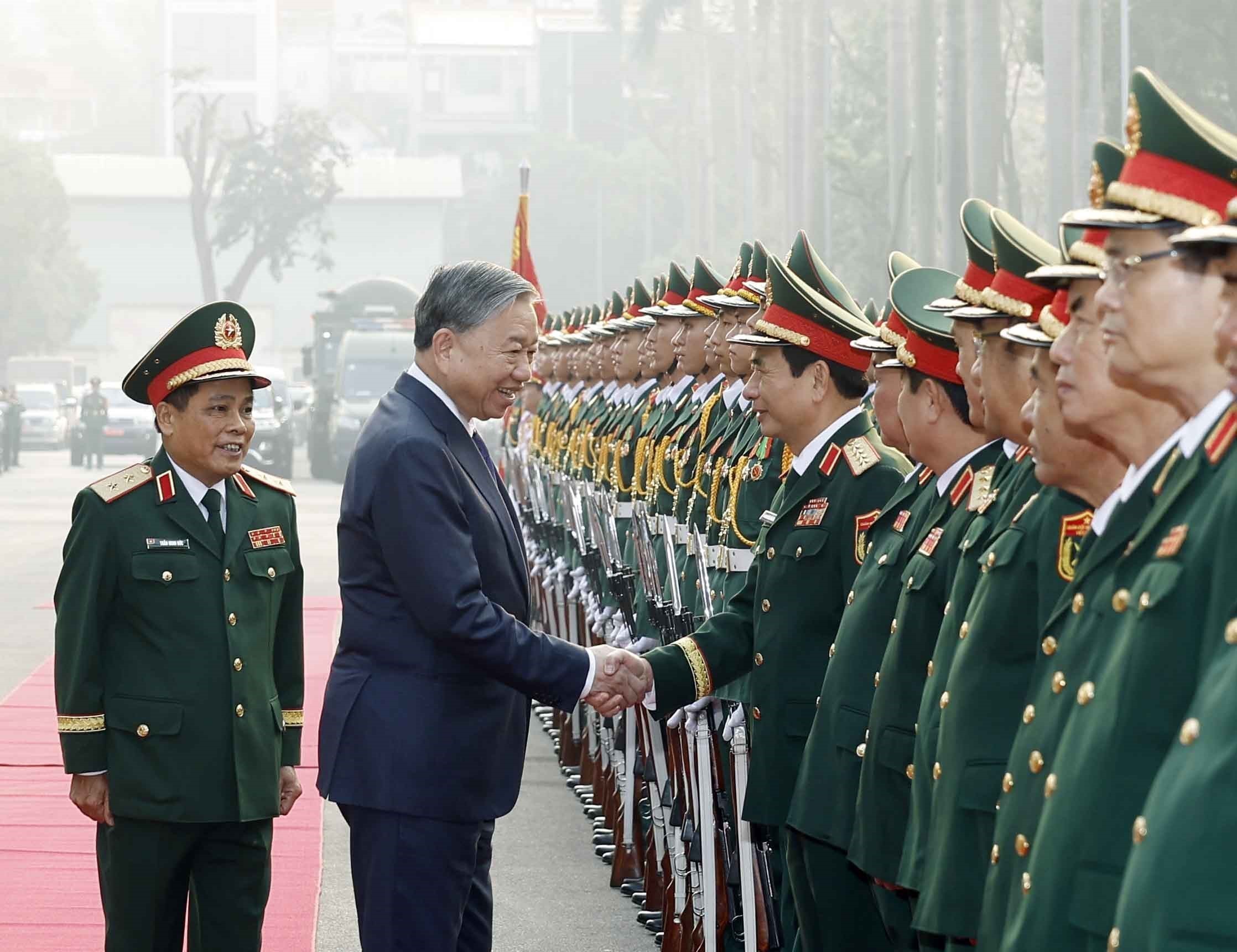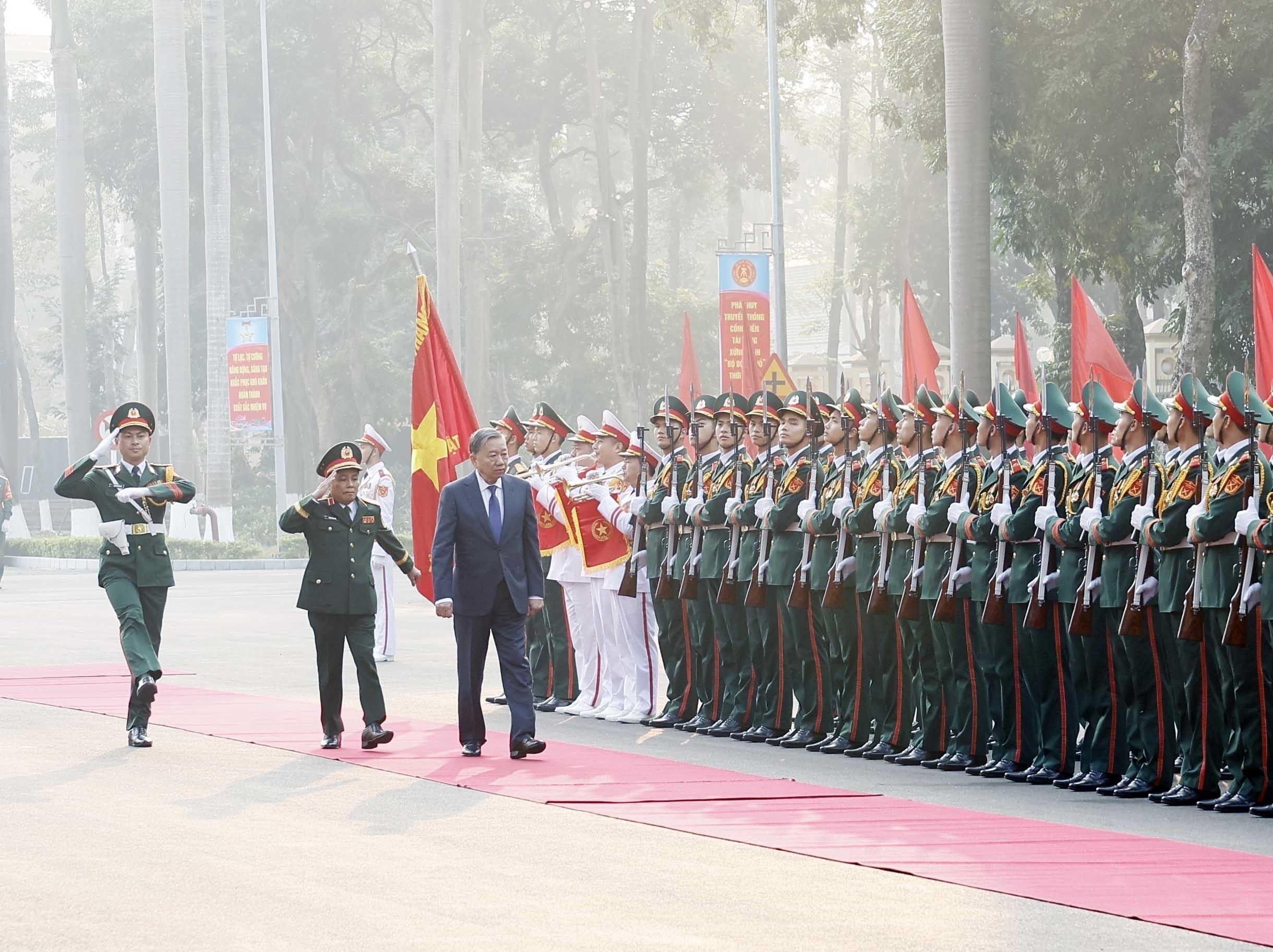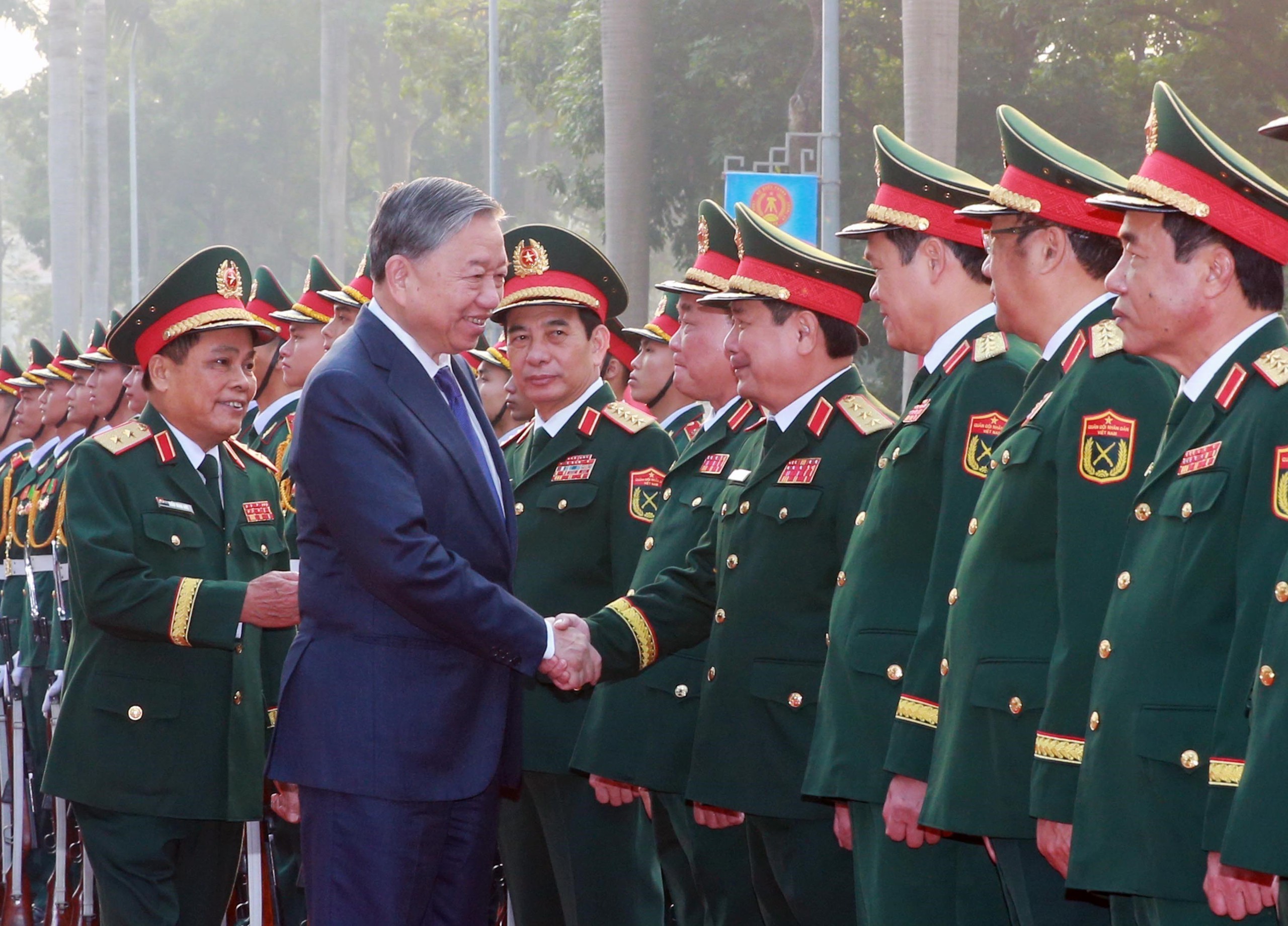 Tổng Bí thư Tô Lâm duyệt đội danh dự. Ảnh: TTXVN