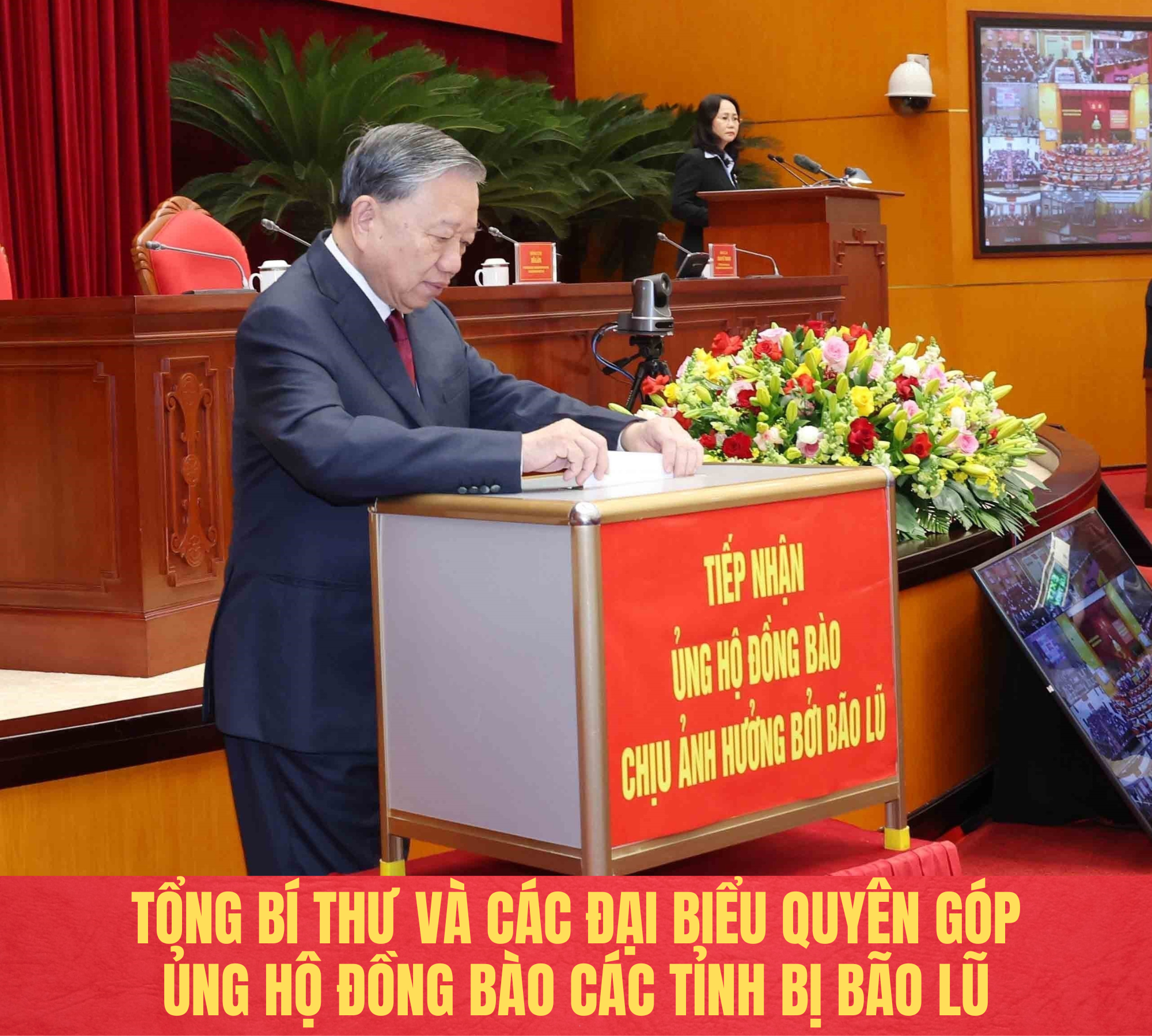 Tổng Bí thư Tô Lâm quyên góp ủng hộ đồng bào chịu ảnh hưởng bởi thiên tai, lũ lụt. Ảnh: Phương Hoa - TTXVN