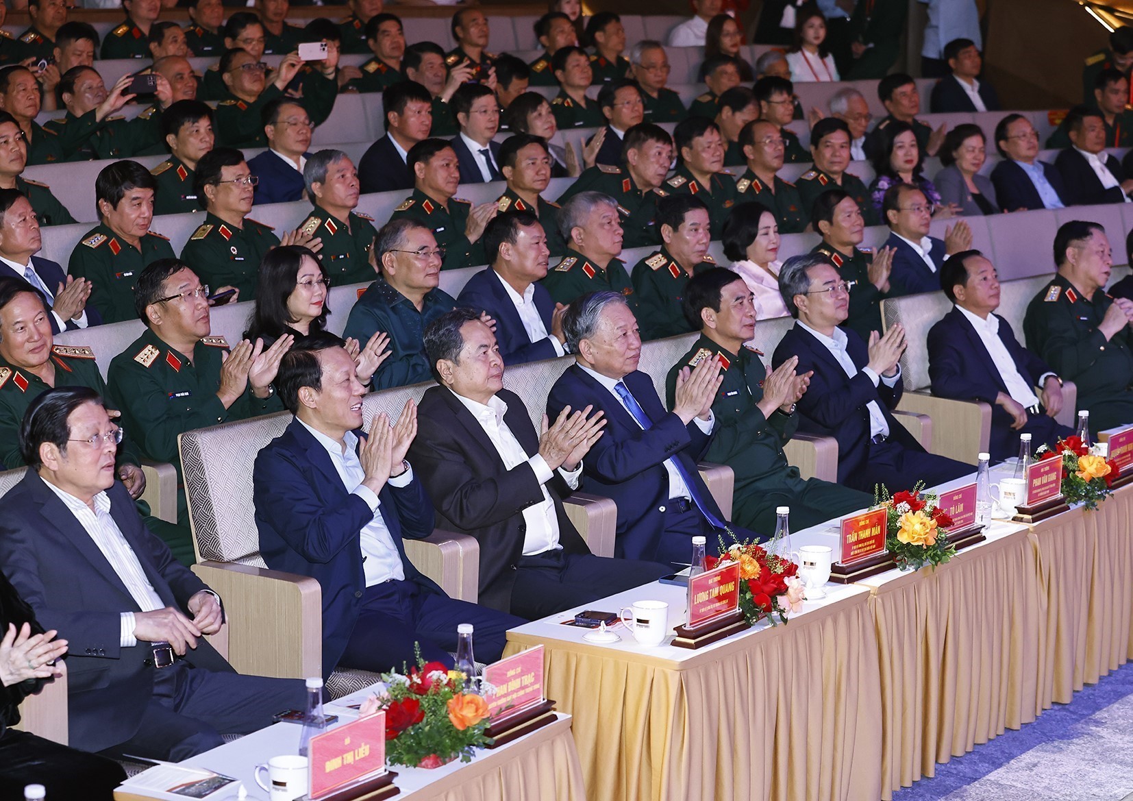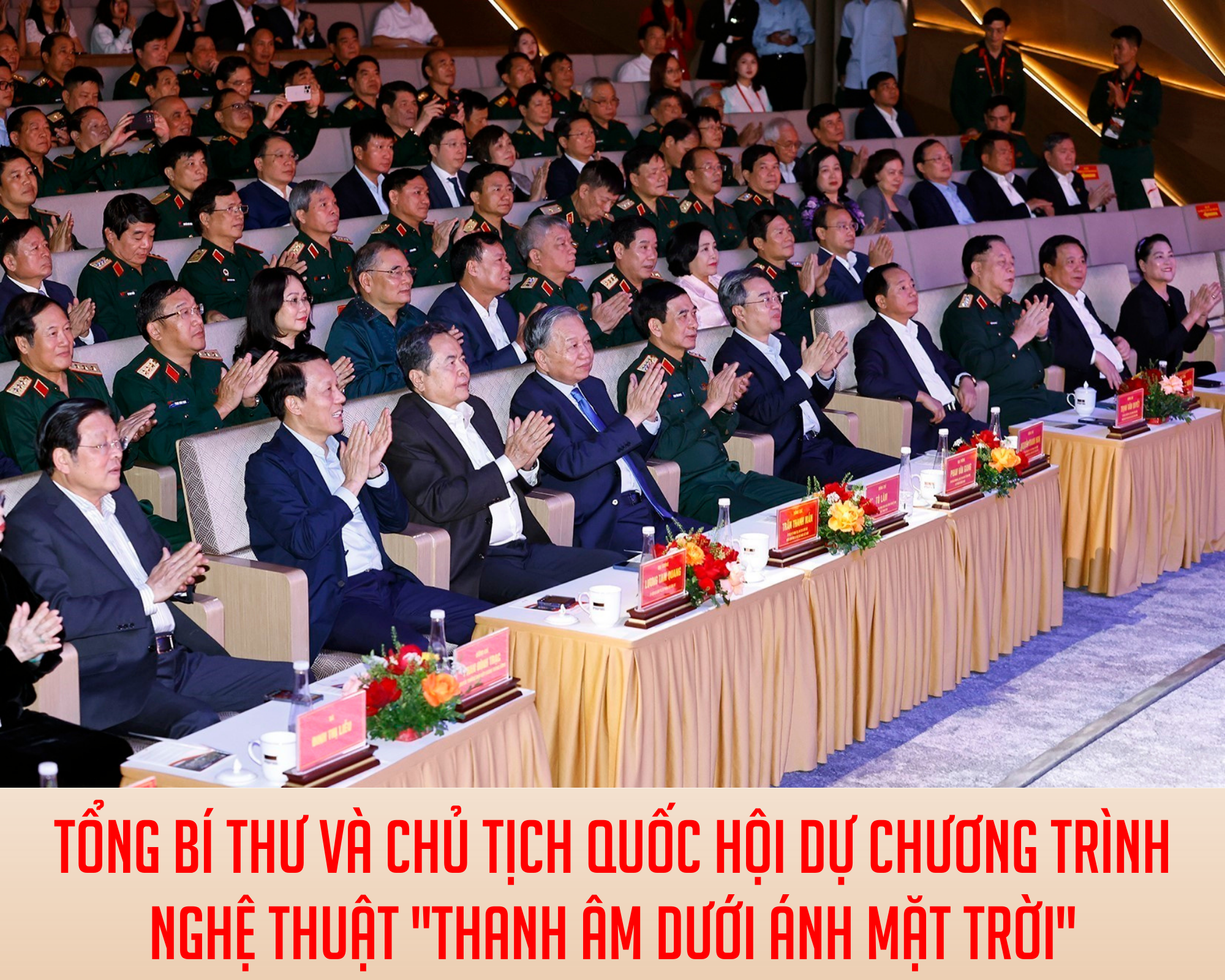 Tối 23/3/2026, tại Nhà hát Hồ Gươm (Hà Nội),Tổng Bí thư Tô Lâm, Chủ tịch Quốc hội Trần Thanh Mẫn cùng các đồng chí lãnh đạo Đảng, Nhà nước dự chương trình nghệ thuật Thanh âm dưới ánh mặt trời.