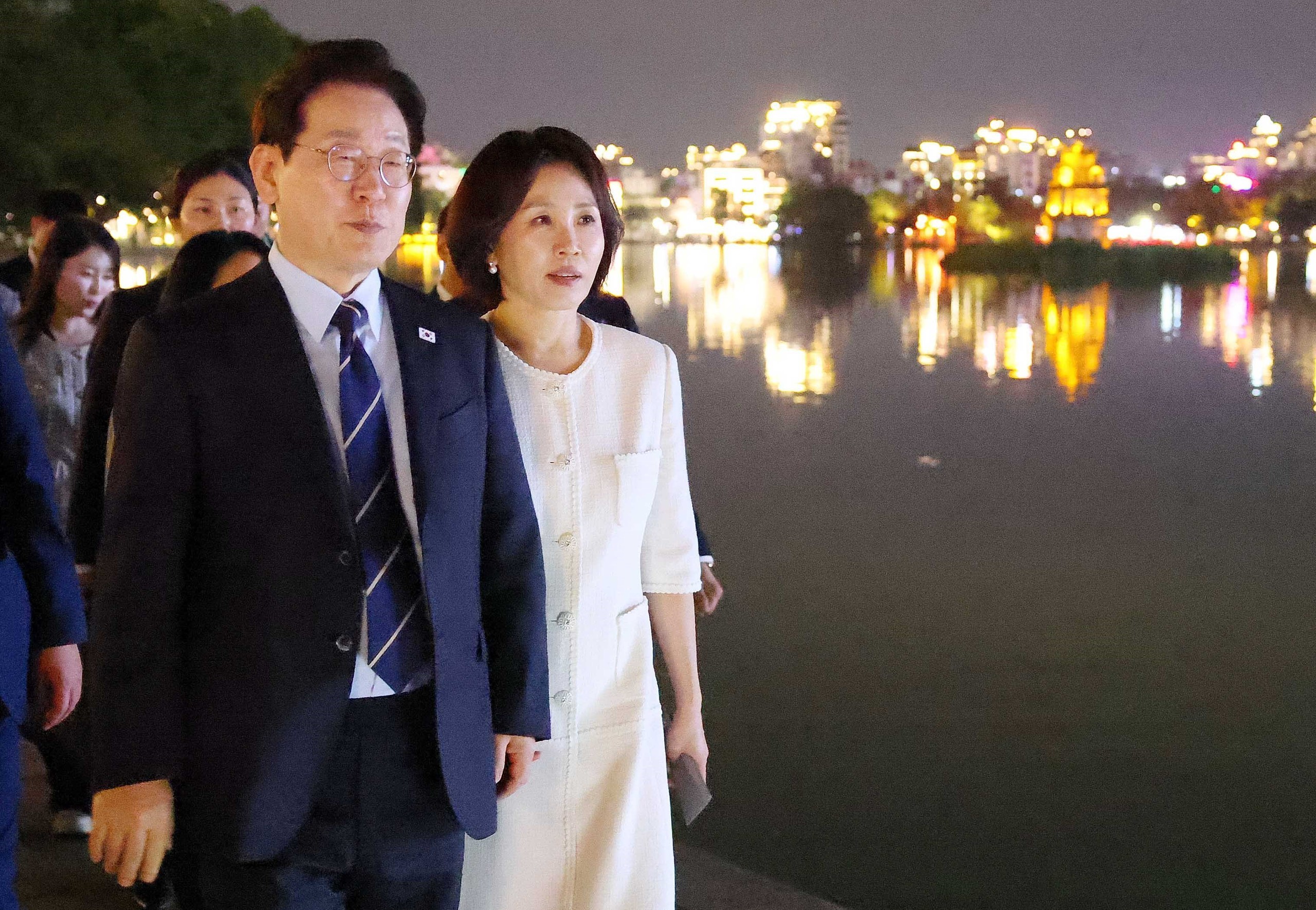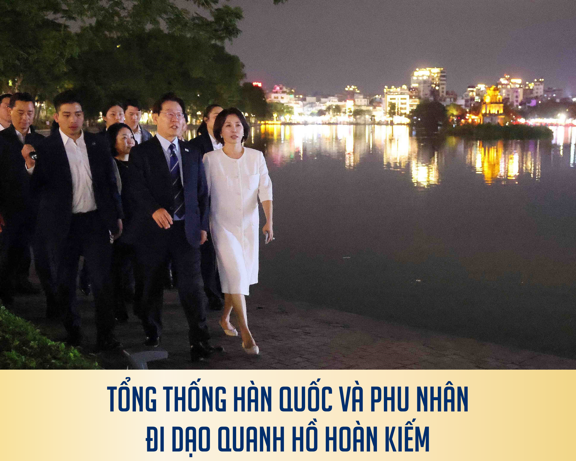 Tổng thống Hàn Quốc Lee Jae Myung và Phu nhân Kim Hae Kyung có những phút giây thư giãn bên hồ Hoàn Kiếm