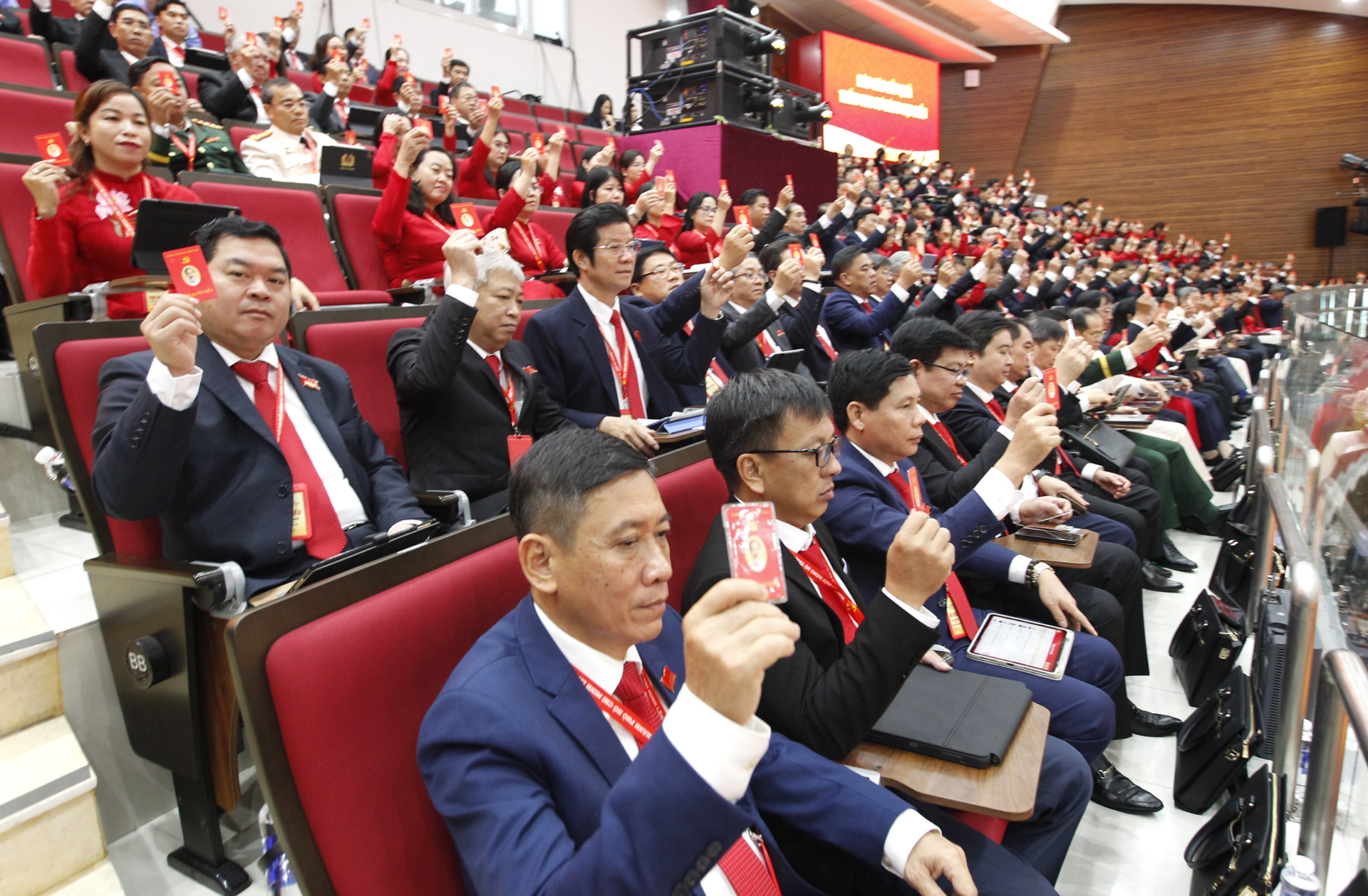 Các đại biểu biểu quyết thông qua phương hướng nhiệm vụ nhiệm kỳ 2025-2030
