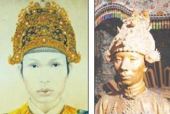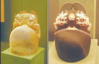 và Chiếc mũ ở tượng vua Khải Định (phải).