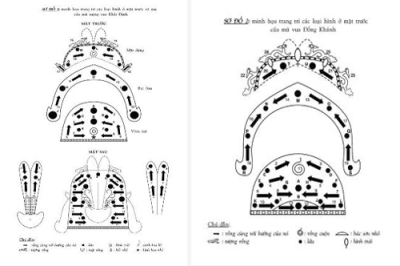 Tôi đã nghiên cứu mũ của vua Khải Định (sơ đồ 1), và sơ đồ 2 là mũ ở bức họa vua Đồng Khánh.