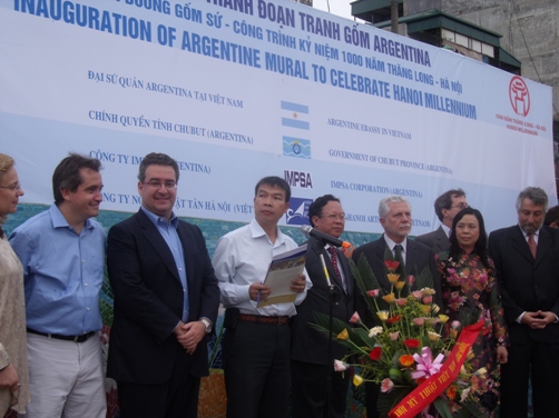 (TT&VH) - Chiều qua (2/6), tại Hà Nội, đã diễn ra lễ cắt băng khánh thành đoạn tranh tường Argentina trên công trình nghệ thuật Con đường gốm sứ, với sự tham dự của Thứ trưởng Bộ Ngoại giao Argentina, Phó Chủ tịch UBND TP Hà Nội, Đại sứ quán Argentina...