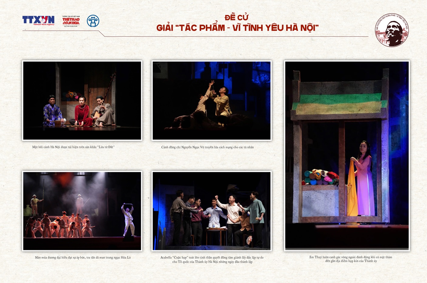 Giải Tác phẩm – Vì tình yêu Hà Nội: Loạt tranh "Hà Nội sau 20 năm xuống phố" của họa sĩ Phạm Bình Chương và nhạc kịch "Lửa từ đất" của Nhà hát Tuổi Trẻ Việt Nam.
