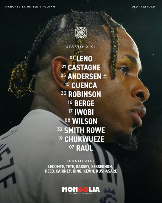 Fulham: Leno; Castagne, Andersen, Cuenca, Robinson; Berge, Iwobi, Smith Rowe; Kevin, Jimenez, Wilson.