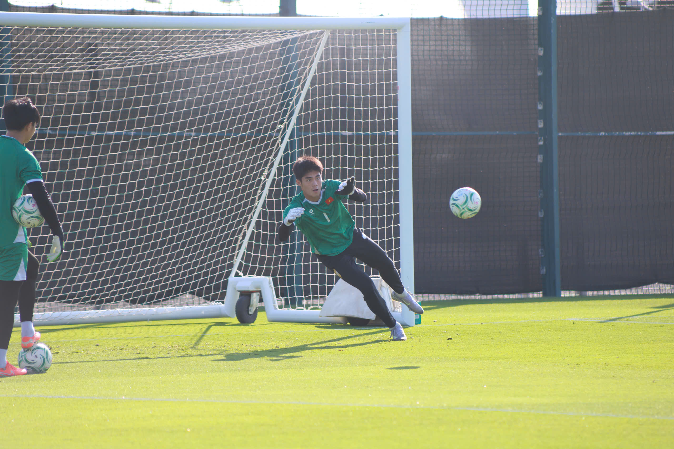 Trung Kiên rèn kỹ năng cản phá 11m trước trận bán kết U23 châu Á.Ảnh: Ted Trần TV