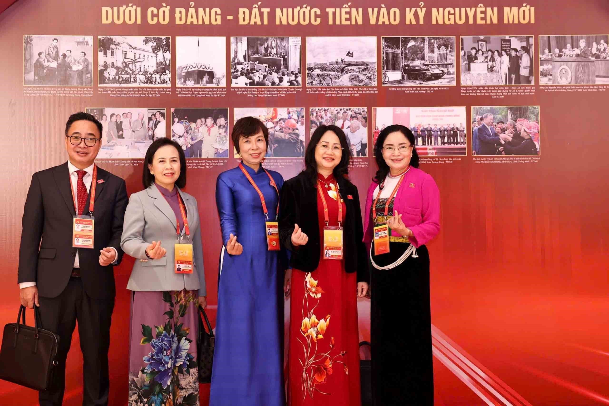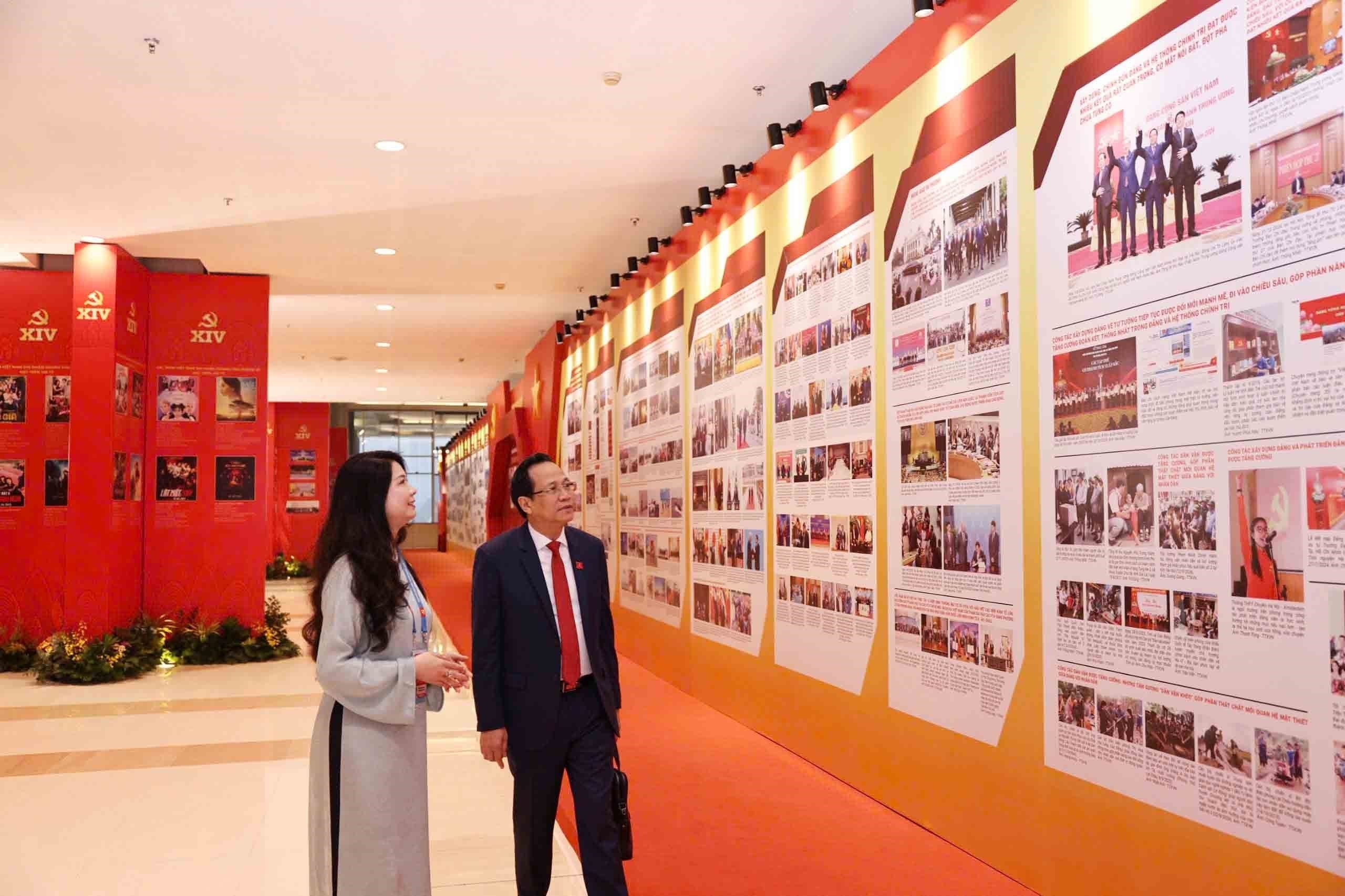 Đại biểu xem Trưng bày ảnh “Dưới cờ Đảng - Đất nước tiến vào Kỷ nguyên mới” do Thông tấn xã Việt Nam thực hiện