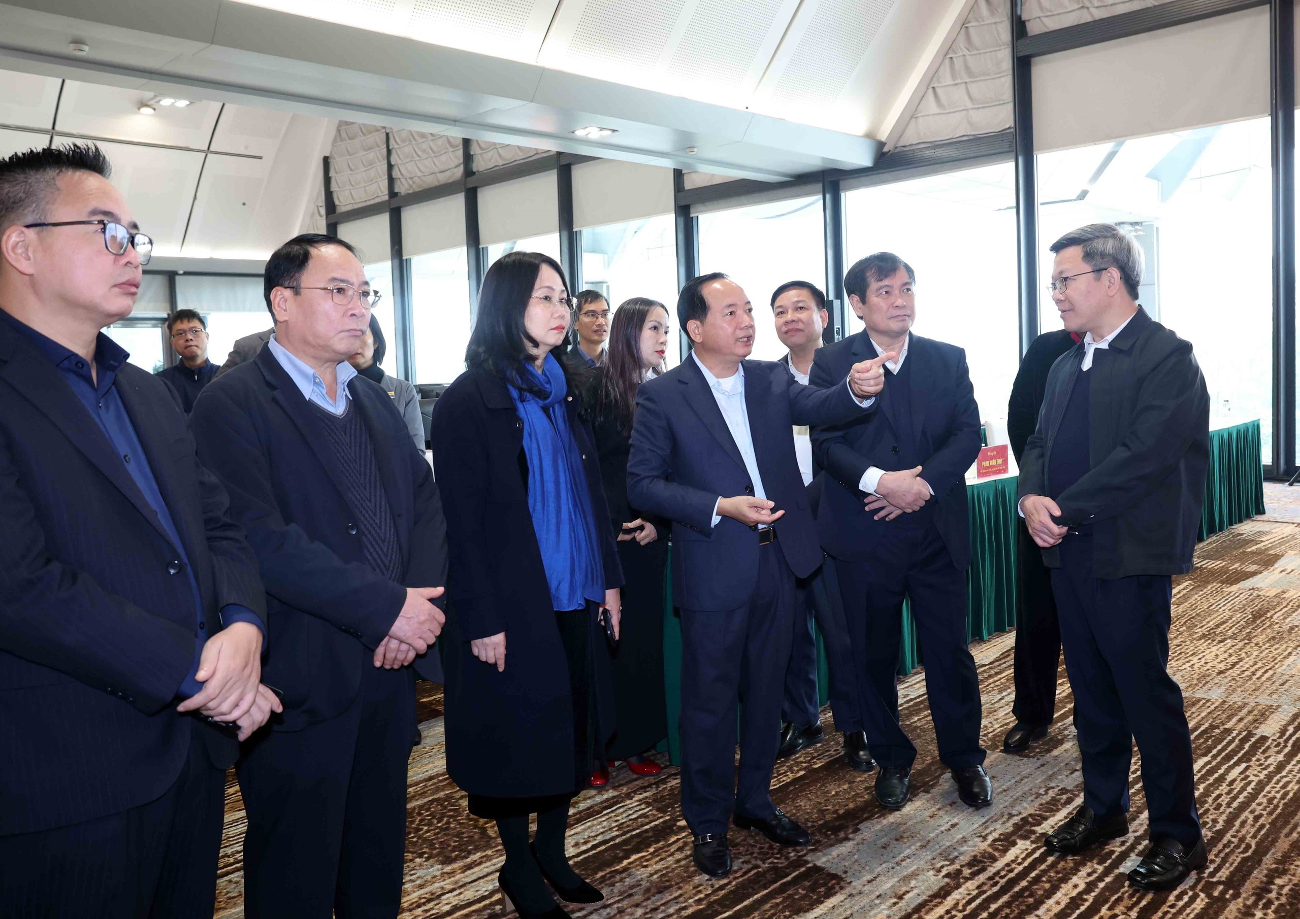 Trưởng Ban Tuyên giáo và Dân vận Trung ương kiểm tra Trung tâm Báo chí Đại hội XIV của Đảng. Ảnh: Phương Hoa - TTXVN