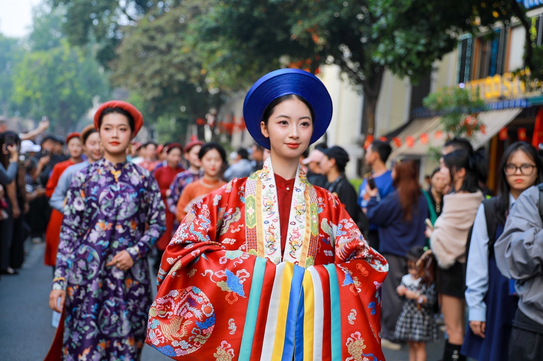 Vietnam Happy Fest 2025: Diễu hành Việt phục "Bách Hoa Hỷ Sự". Ảnh: TTXVN phát