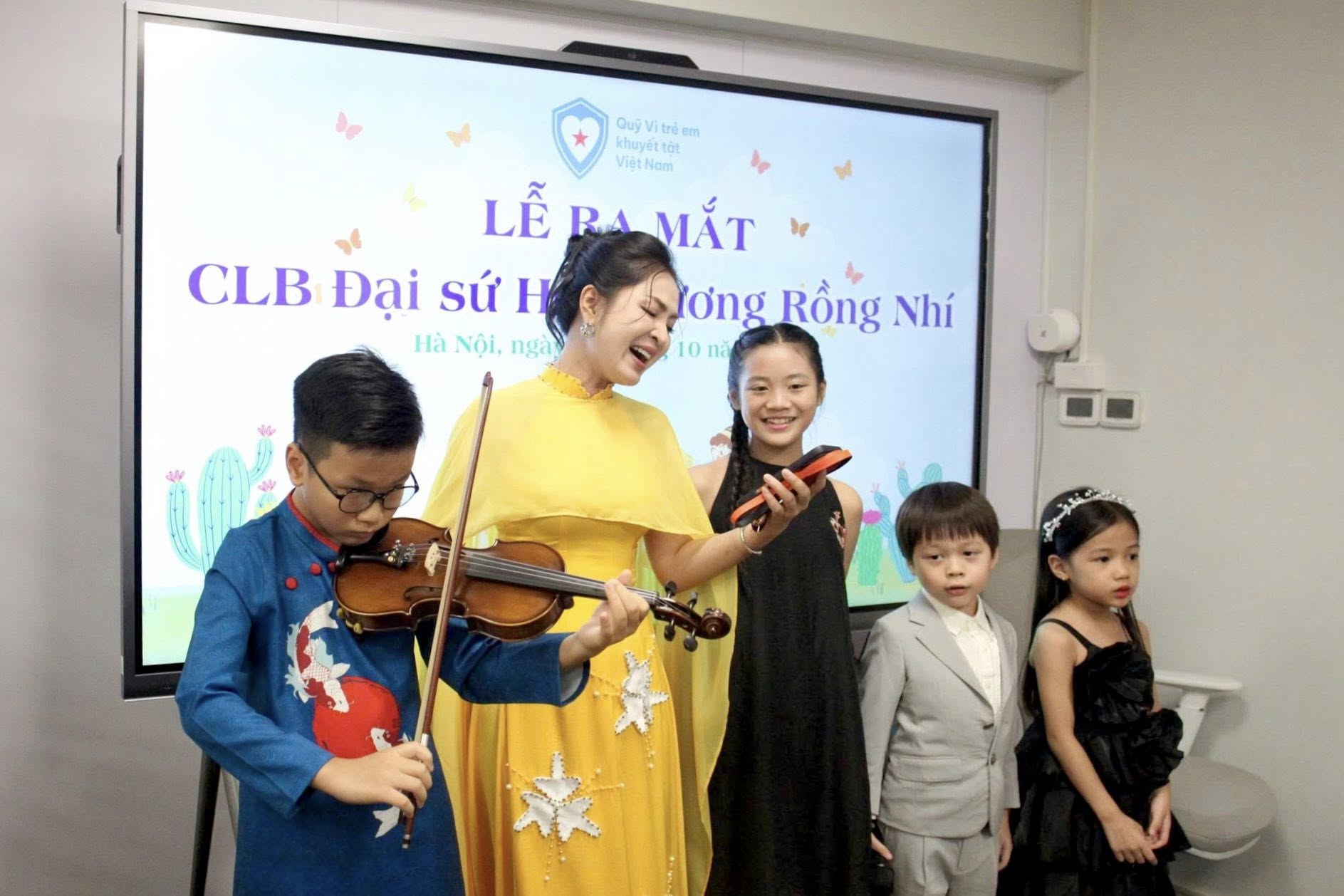 Ca sĩ Nguyễn Duyên Quỳnh cùng các thành viên CLB Đại sứ Hoa Xương Rồng Nhí của Quỹ trong phần biểu diễn tại Lễ ra mắt CLB
