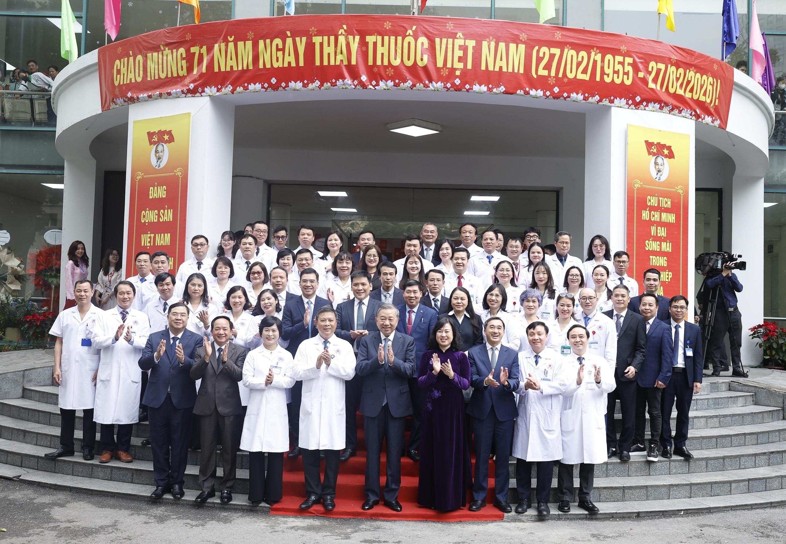 Nhân dịp kỷ niệm 71 năm Ngày Thầy thuốc Việt Nam (27/2/1955 – 27/2/2026), chiều 27/2/2026, tại Hà Nội, Tổng Bí thư Tô Lâm đến thăm, chúc mừng cán bộ, nhân viên y tế Bệnh viện Hữu nghị.