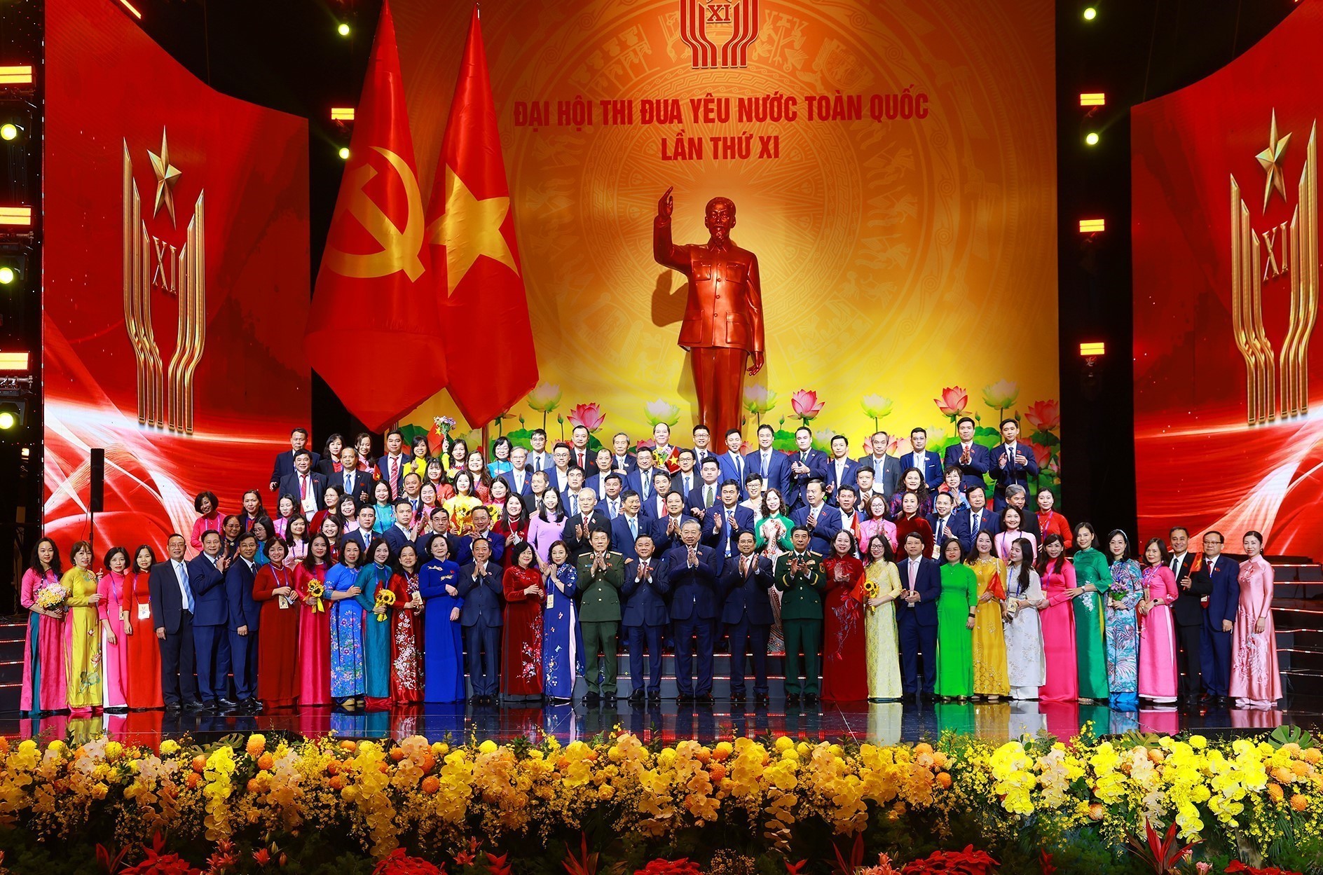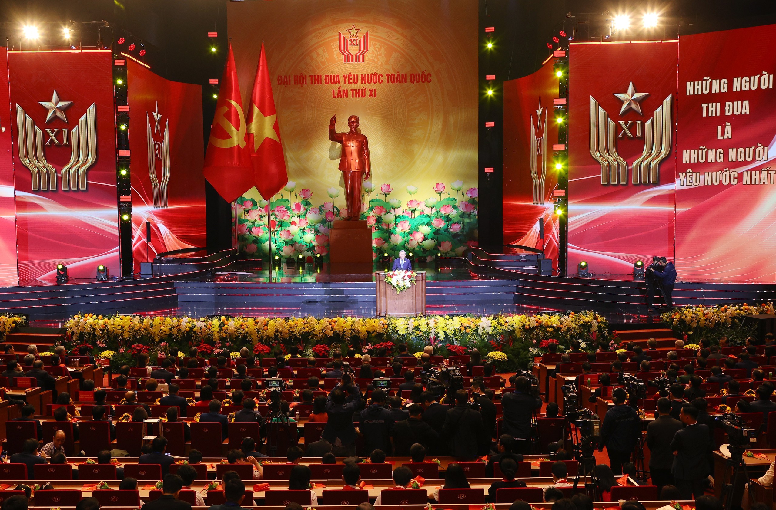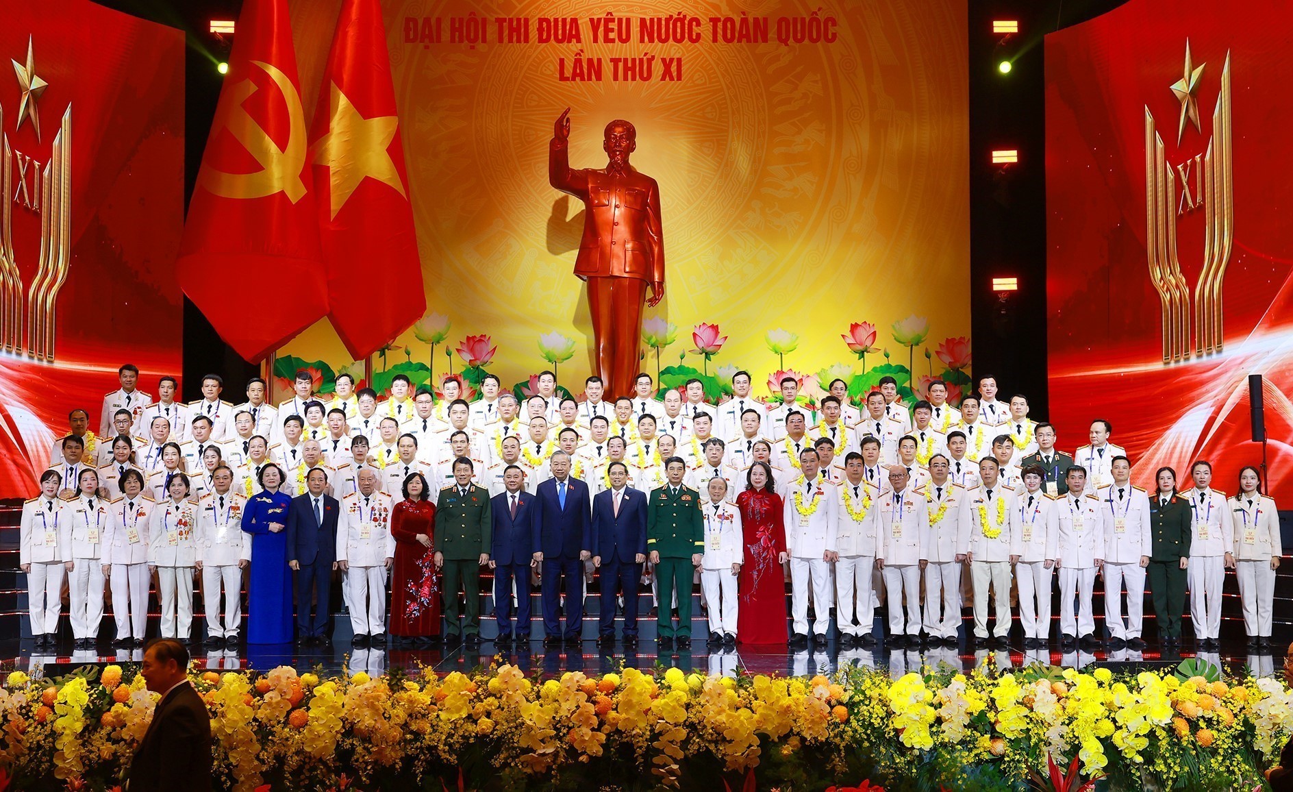 Tổng Bí thư Tô Lâm, Chủ tịch nước Lương Cường và Thủ tướng Phạm Minh Chính cùng các đại biểu tham dự Đại hội Thi đua yêu nước lần thứ XI
