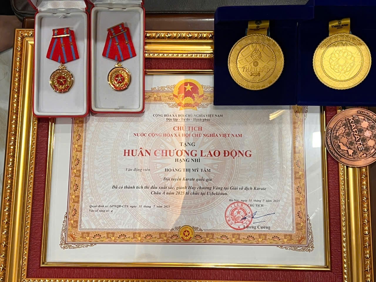 Thành công ấy không phải khoảnh khắc lóe sáng nhất thời. Năm 2022, Mỹ Tâm tiếp tục lọt vào chung kết giải vô địch karate châu Á và giành HCB. Hai năm sau đó, 2024 và 2025, cô trở lại ngôi cao nhất với hai tấm HCV cá nhân liên tiếp. Riêng hạng cân 55kg nữ, Mỹ Tâm đã 4 lần vào chung kết châu Á, giành 3 HCV, một sự ổn định hiếm có.