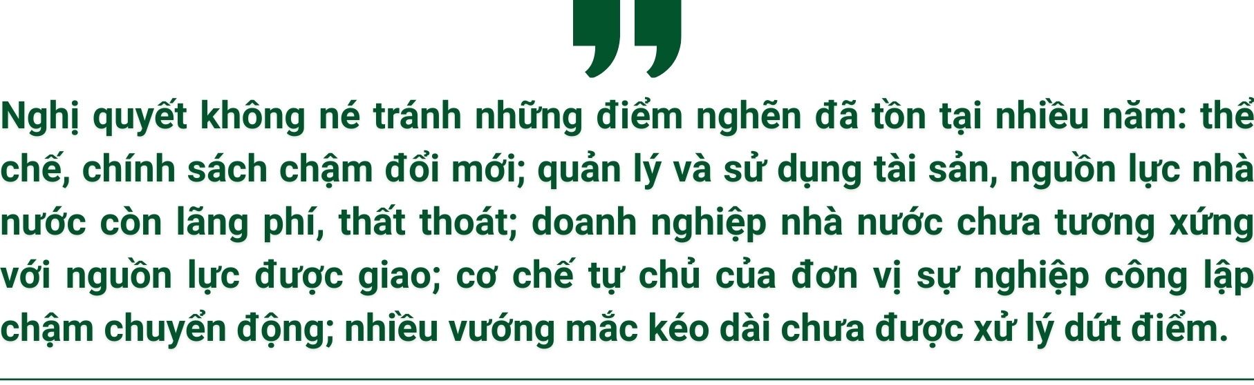 Một yêu cầu mang tính bản lề của Nghị quyết là rà soát, thống kê, đánh giá và hạch toán đầy đủ các nguồn lực kinh tế nhà nước theo nguyên tắc thị trường; gắn quản lý nguồn lực với mục tiêu phát triển kinh tế - xã hội; tách bạch rõ việc sử dụng nguồn lực nhà nước để cung cấp hàng hóa, dịch vụ công với hoạt động kinh doanh. Đây chính là "đường ray" để đưa nguồn lực công vào kỷ luật hiệu quả: việc gì là sứ mệnh công phải đo bằng chất lượng phục vụ và lợi ích xã hội; việc gì là kinh doanh phải đo bằng năng suất, quản trị, thị trường và cạnh tranh.