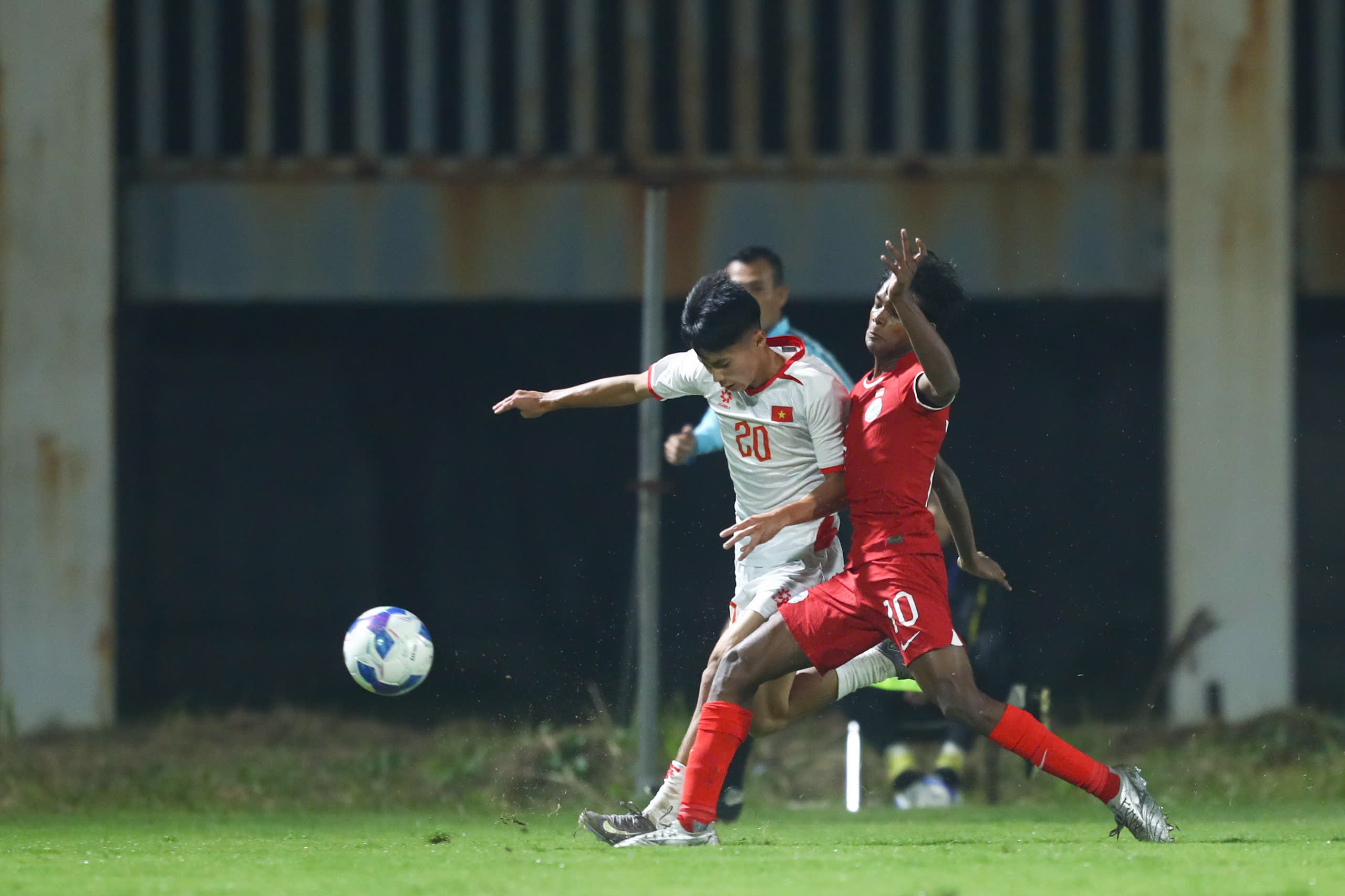 20': U17 Việt Nam tăng cường sức ép lên phần sân đối phương. U17 Singapore đang phải phòng ngự trong bối cảnh họ bị dẫn bàn.