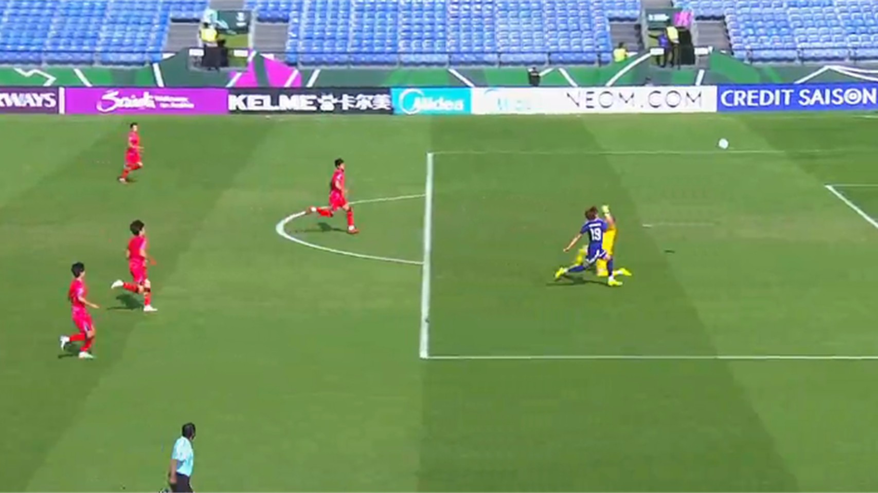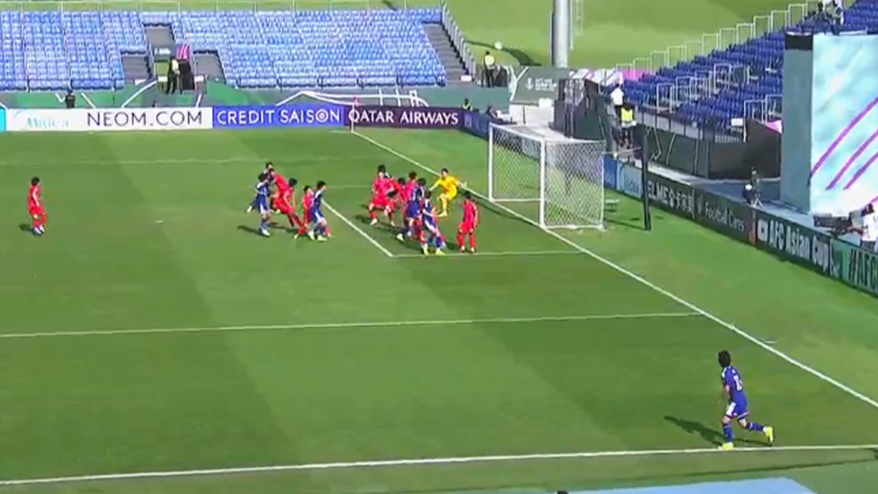 Phút 6: KHÔNG ĐƯỢC! Thủ thành Hong Sung-min đẩy bóng thành công trong tình huống cố định của các cầu thủ Nhật Bản.